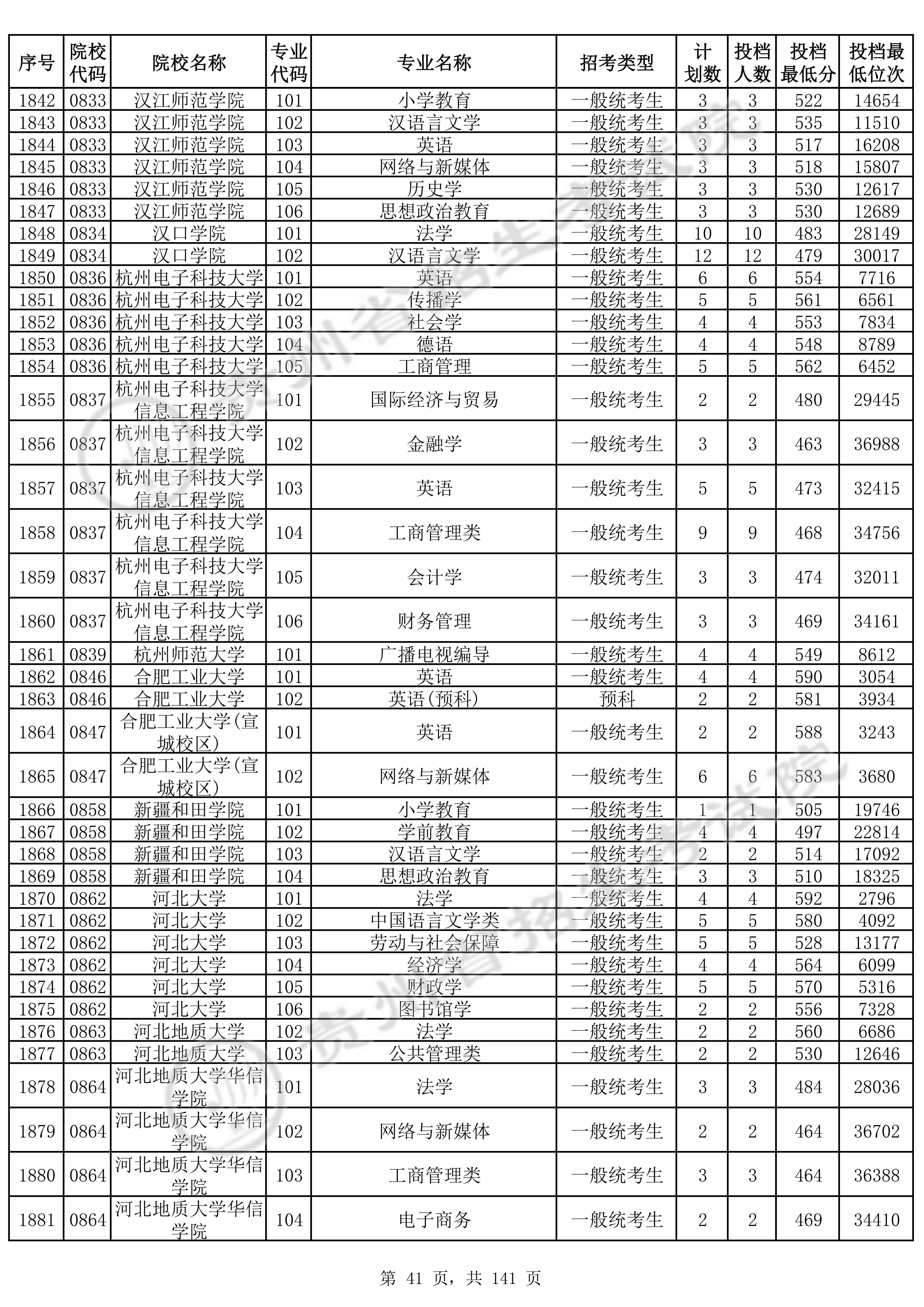 | 0834 | 汉口学院 | 102 | 汉语言文学 | 479 | 30017 | 本科 | 历史 ,再选: 不限 | 1 |
