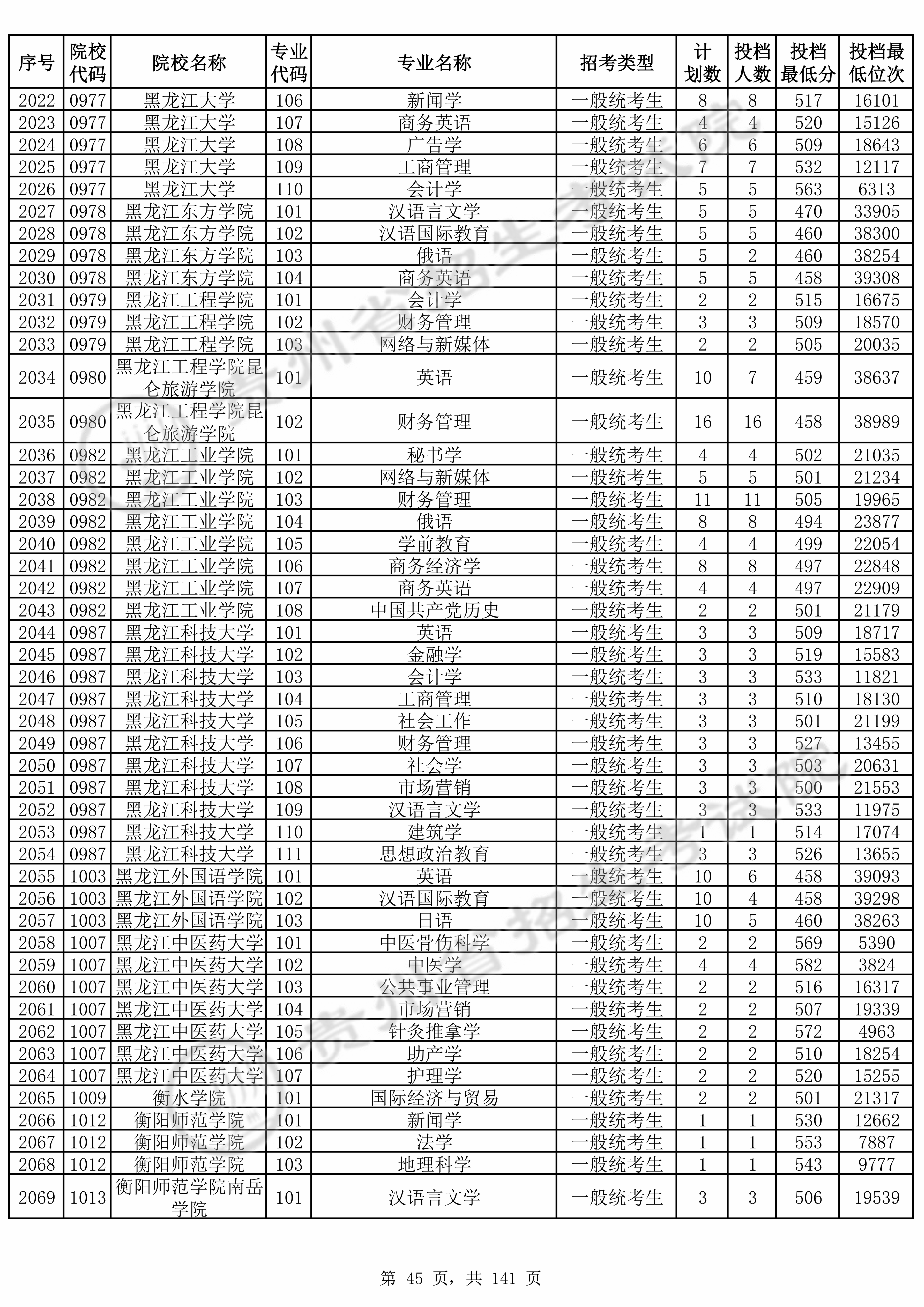 | 院校代码 | 院校名称 | 专业代码 | 专业名称 | 最低分数 | 最低位次 | 专业层次 | 限考科目 | 投档 |