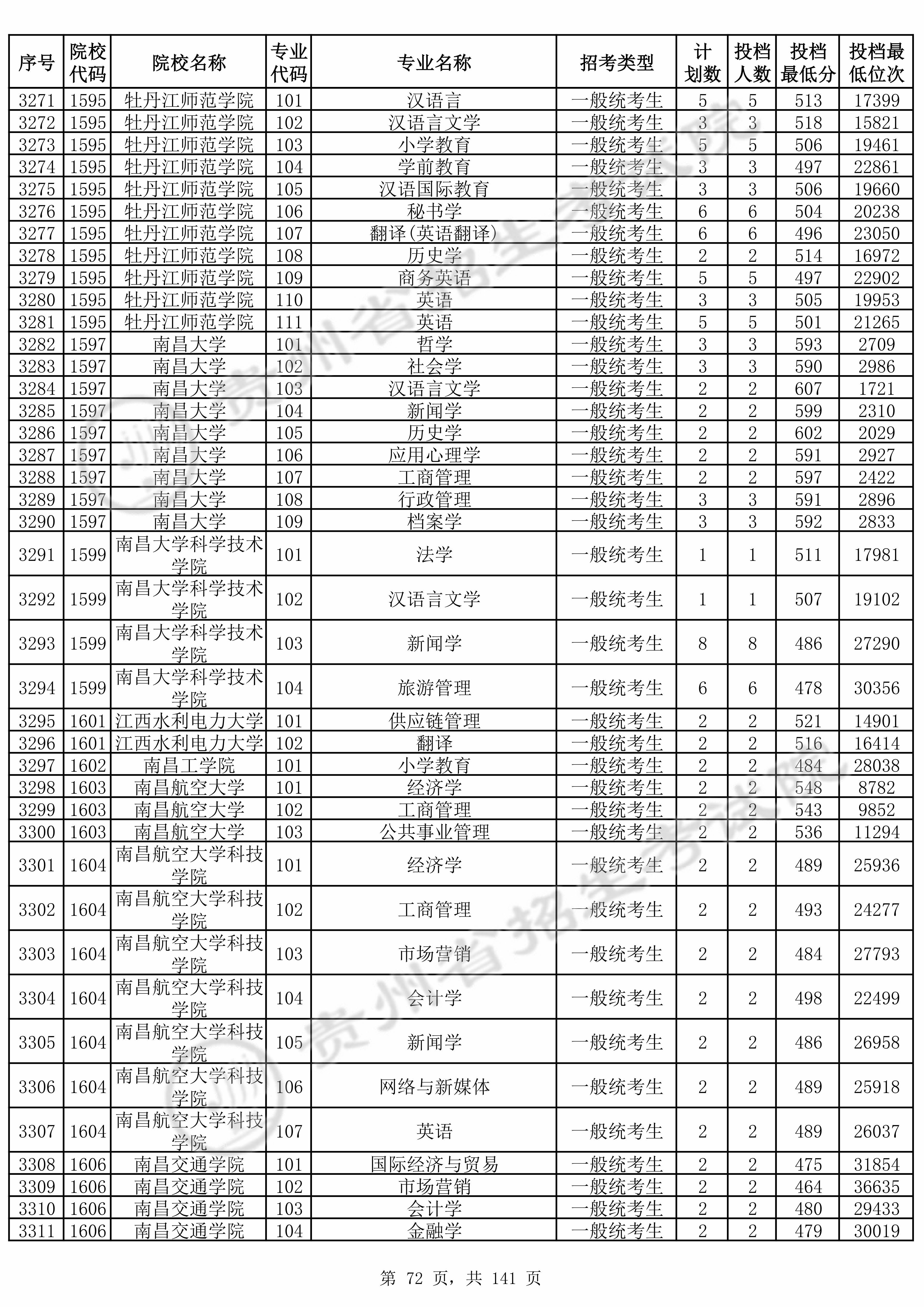招生代码 | 大学名称 | 专业名称 | 最低分数 | 最低位次 | 专业层次 | 限考科目 | 投档 |