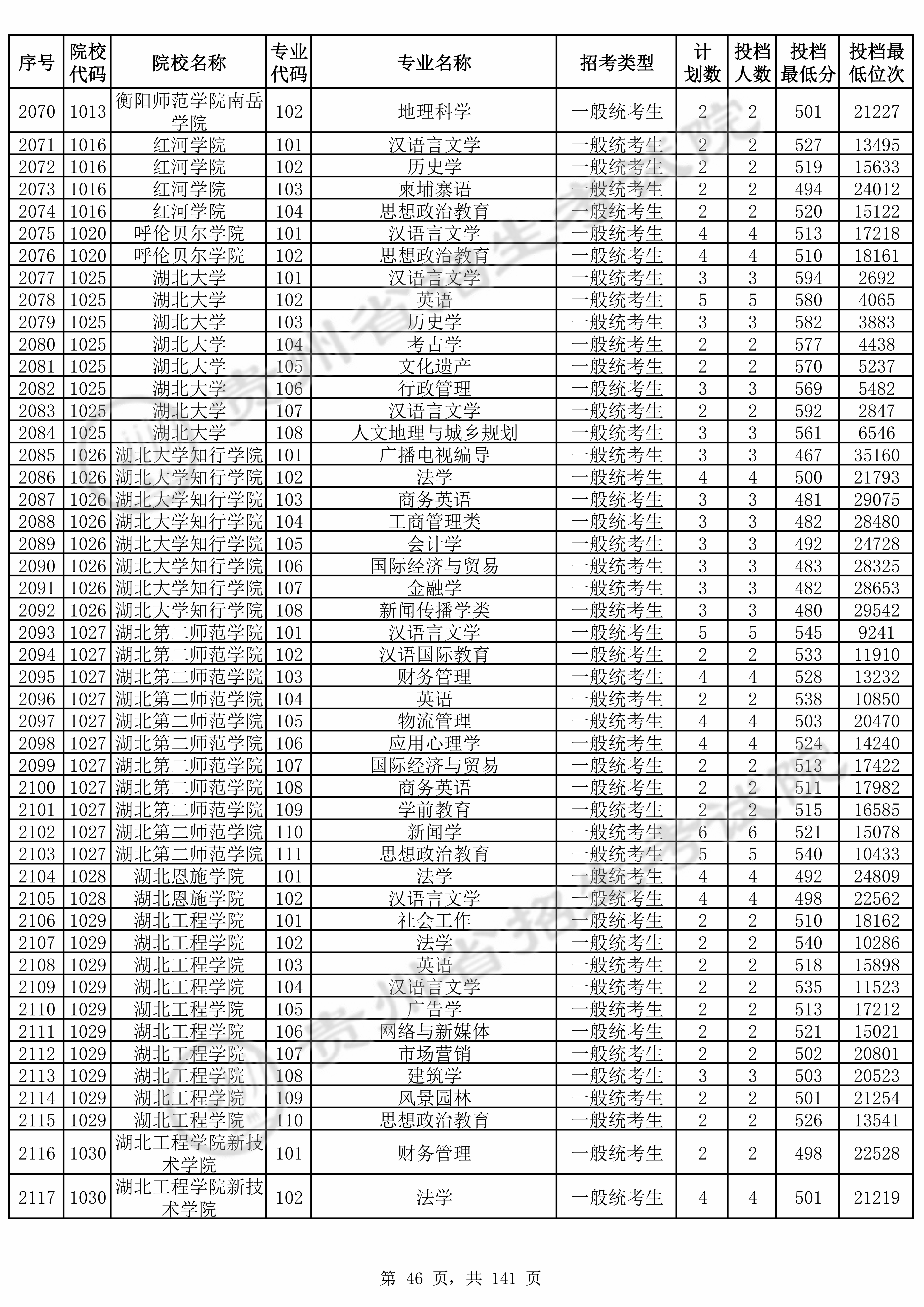 2025年贵州高考普通类本科批 湖北大学 的 行政管理 专业录取分数溯源信息