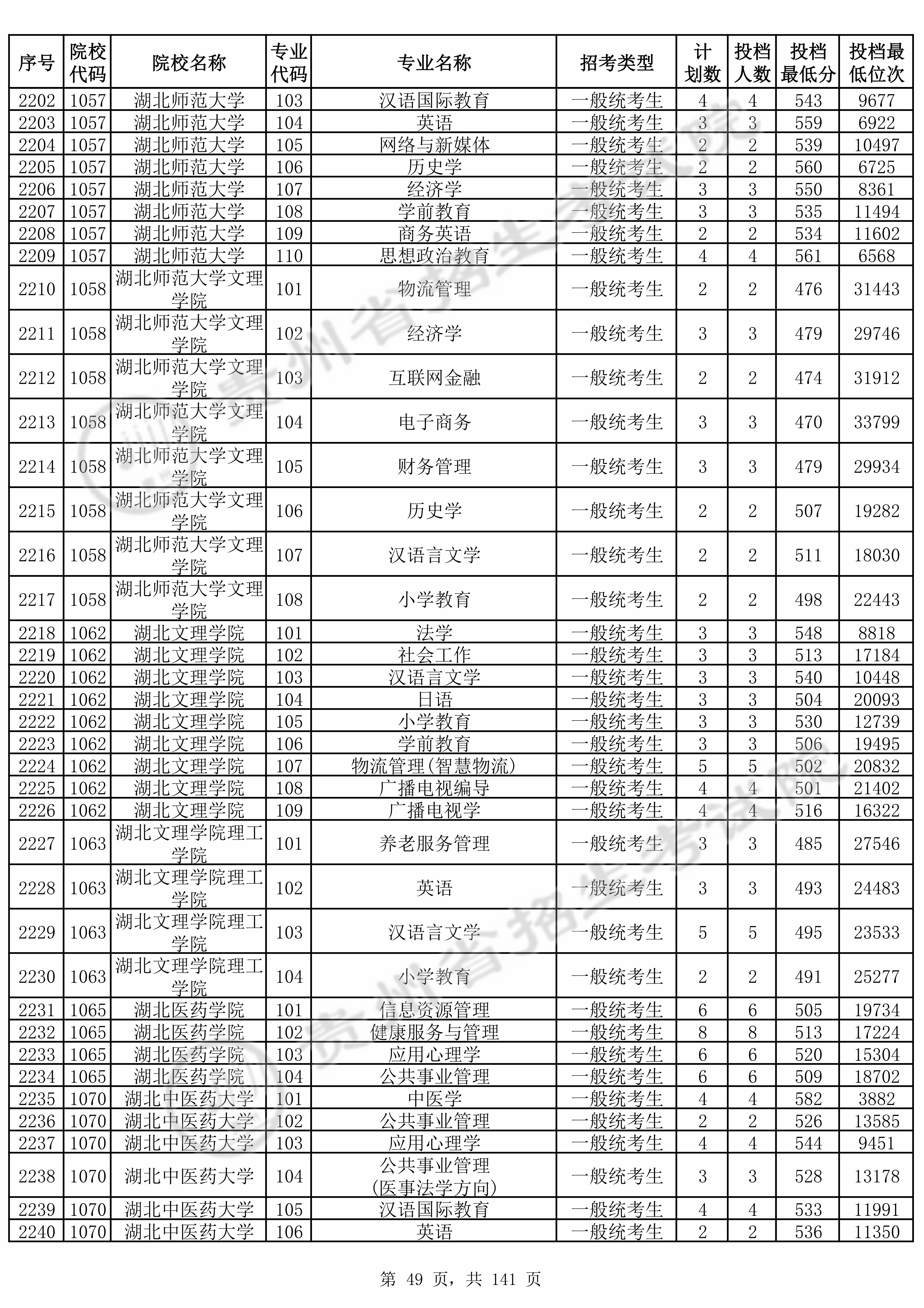 2025年贵州高考普通类本科批 湖北师范大学 的 汉语国际教育 专业录取分数溯源信息