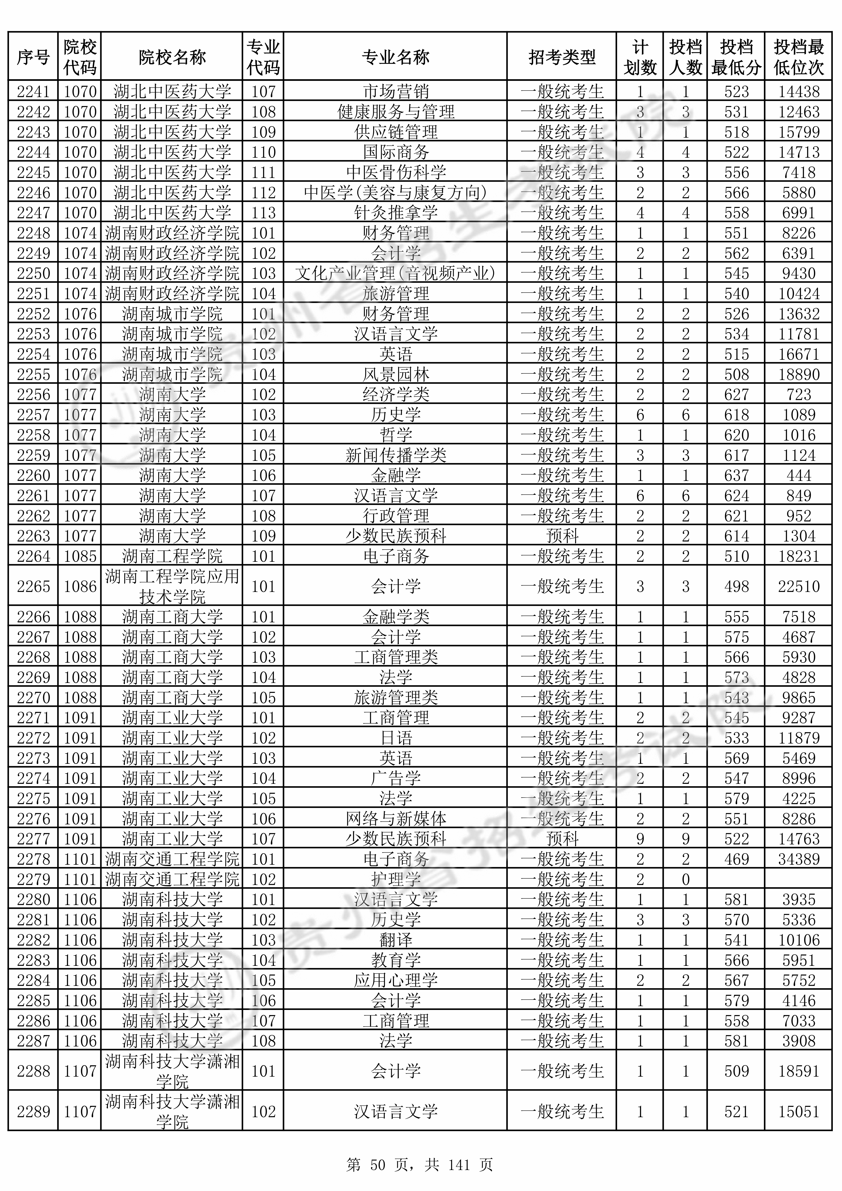 | 普通类本科批 | ||||||||