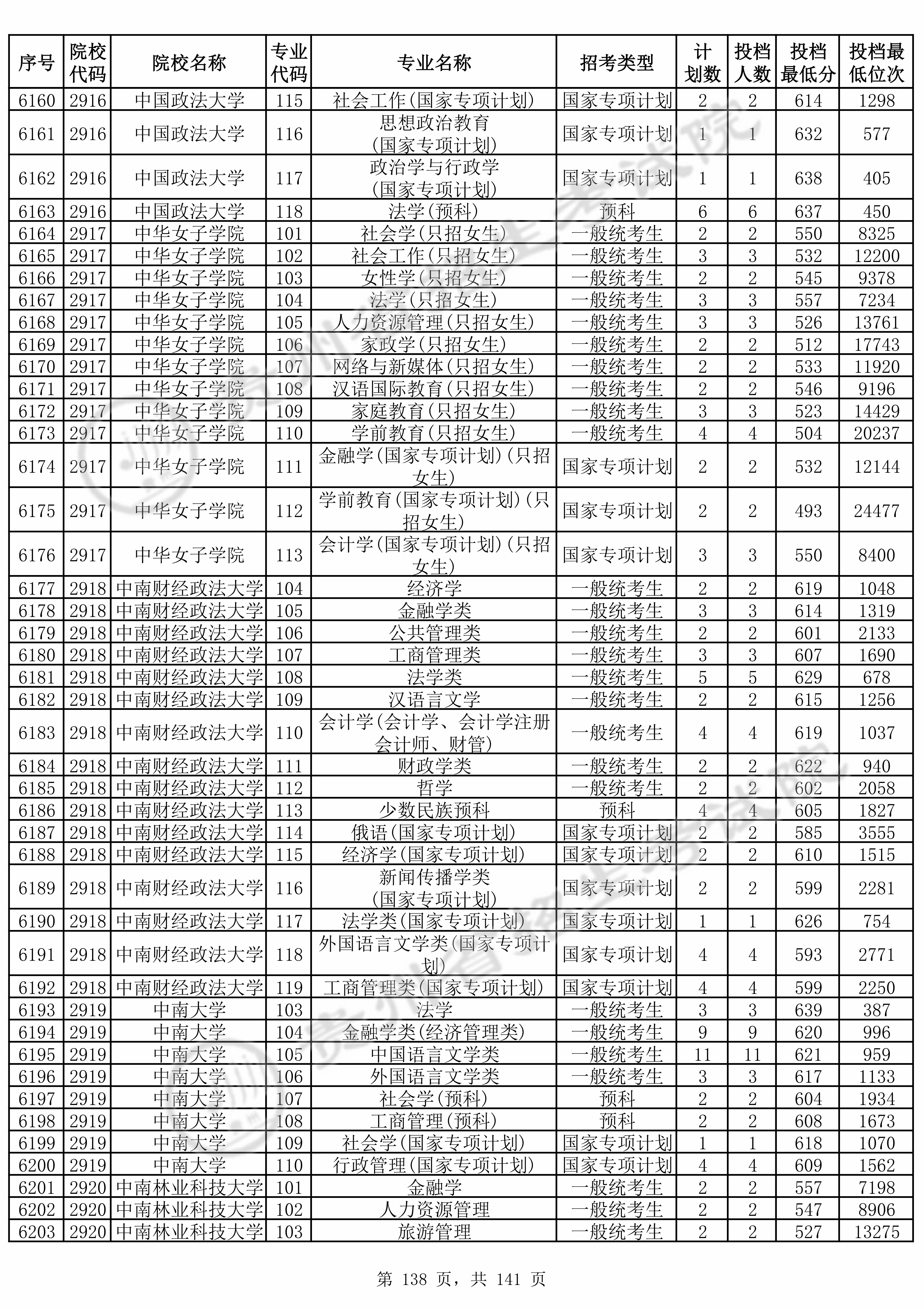 2916 | 中国政法大学 | 社会工作(国家专项计划) | 614 | 1298 | 本科 | 历史 ,再选: 不限 | 1 |