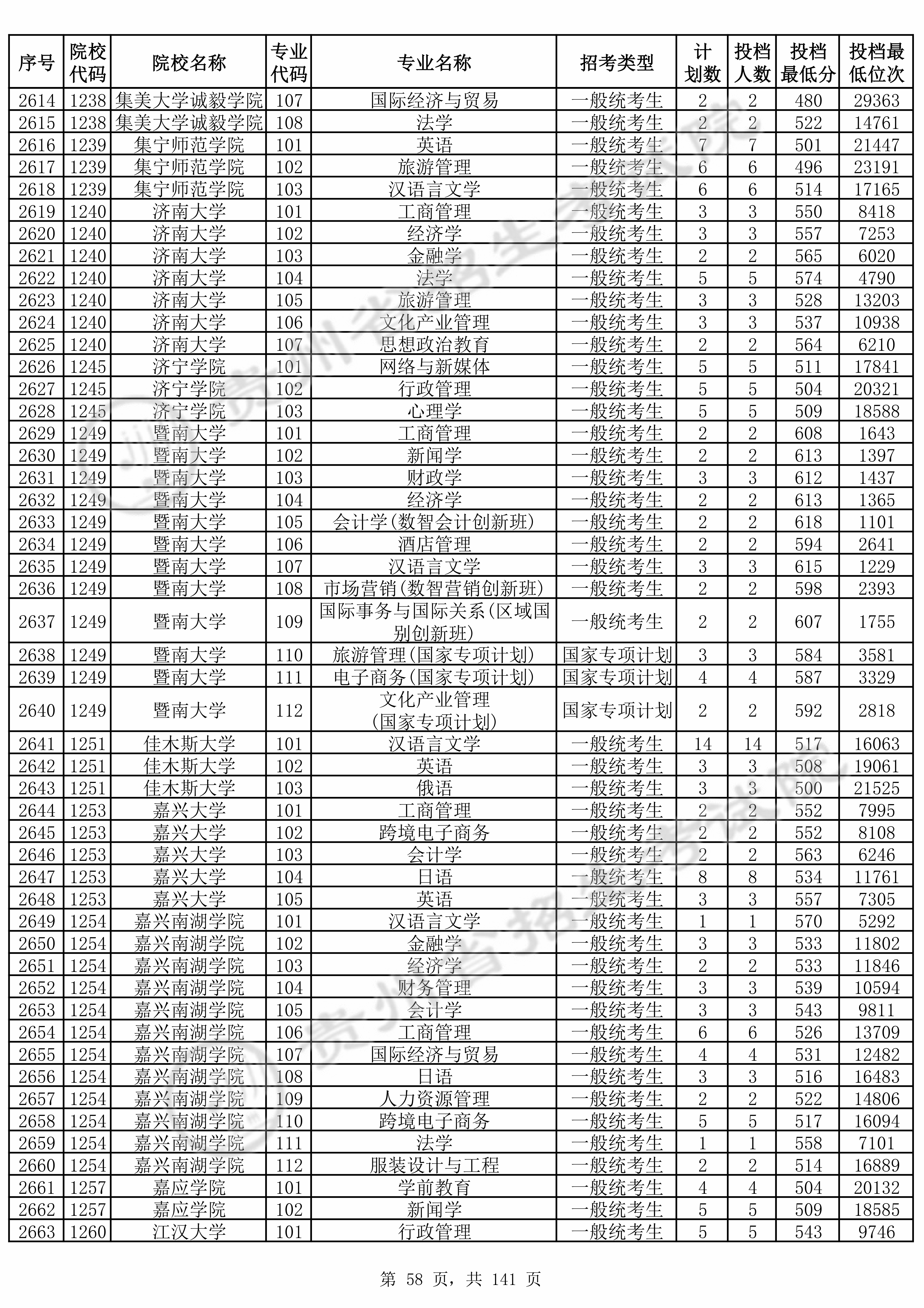 | 院校代码 | 院校名称 | 专业代码 | 专业名称 | 最低分数 | 最低位次 | 专业层次 | 限考科目 | 投档 |