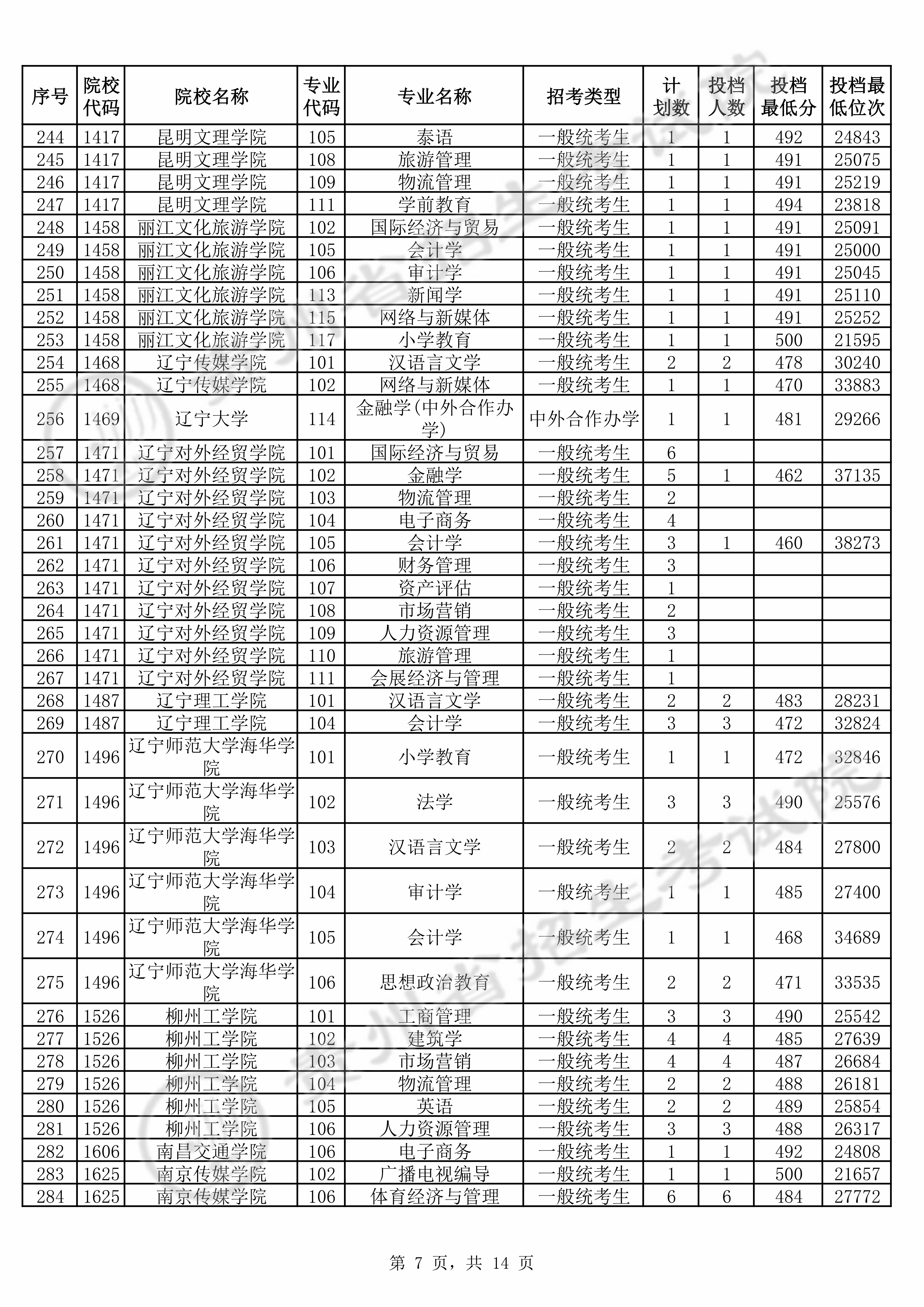 | 院校代码 | 院校名称 | 专业代码 | 专业名称 | 最低分数 | 最低位次 | 专业层次 | 限考科目 | 投档 |