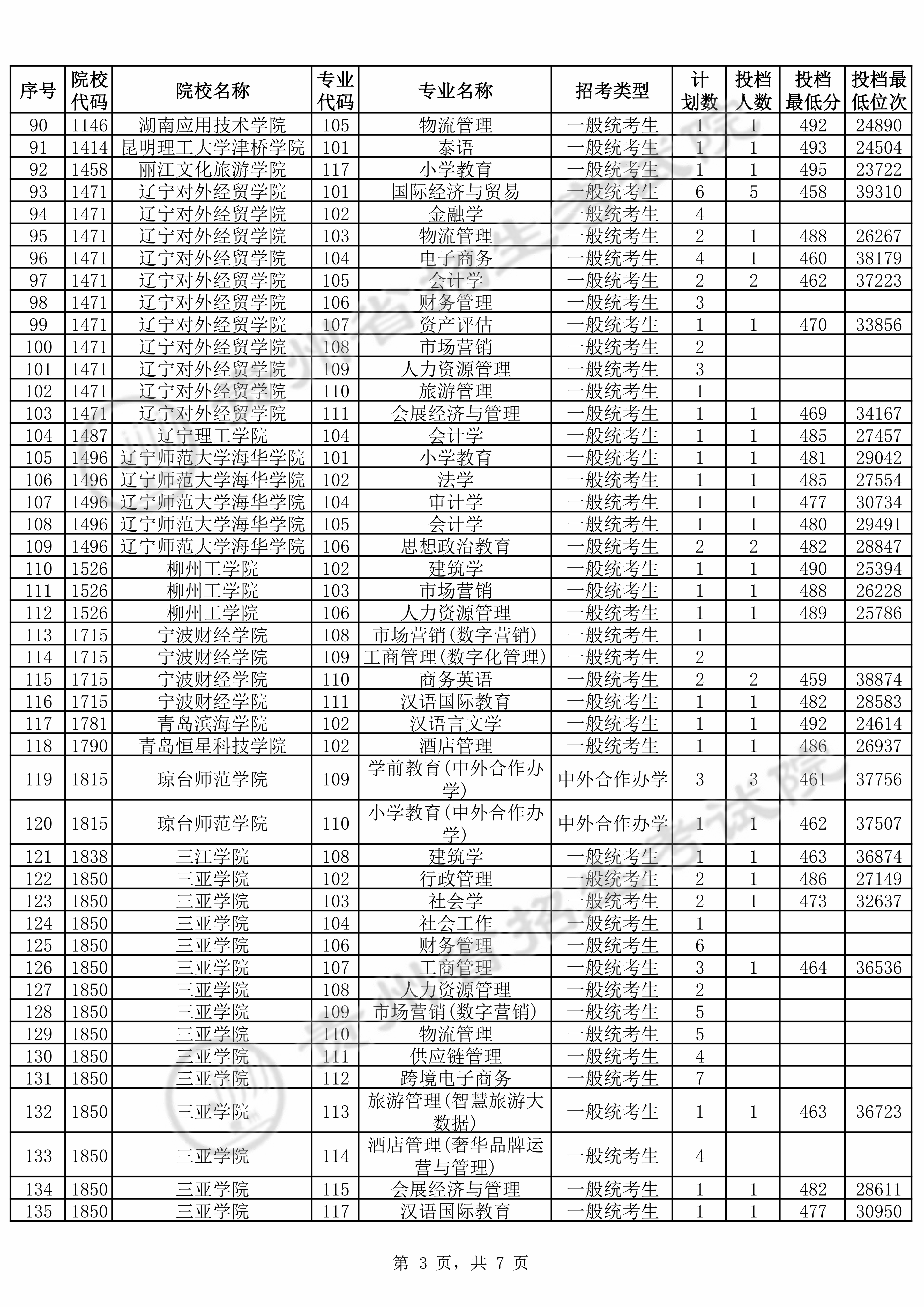 | 院校代码 | 院校名称 | 专业代码 | 专业名称 | 最低分数 | 最低位次 | 专业层次 | 限考科目 | 投档 |