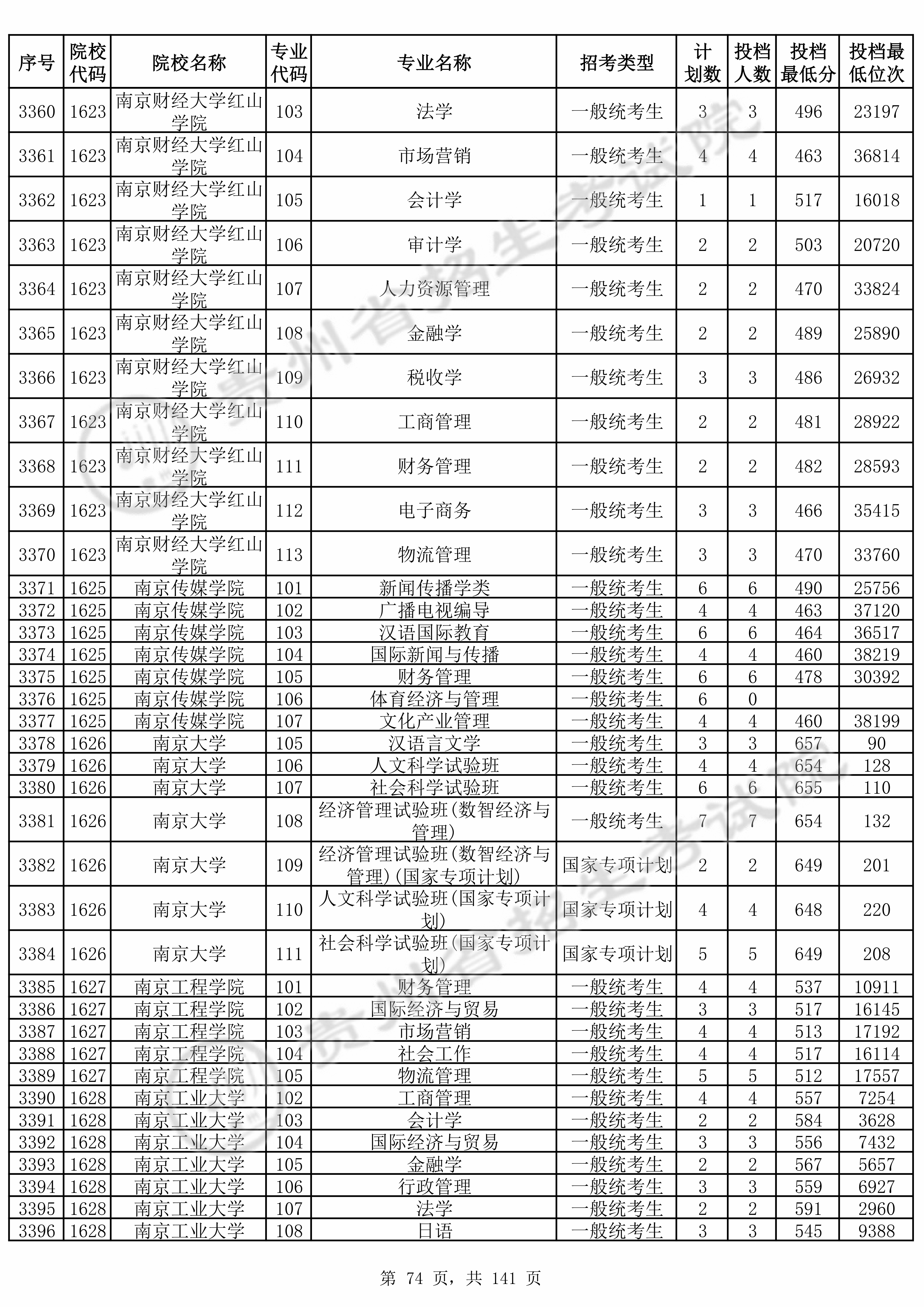 | 1625 | 南京传媒学院 | 105 | 财务管理 | 478 | 30392 | 本科 | 历史 ,再选: 不限 | 1 |