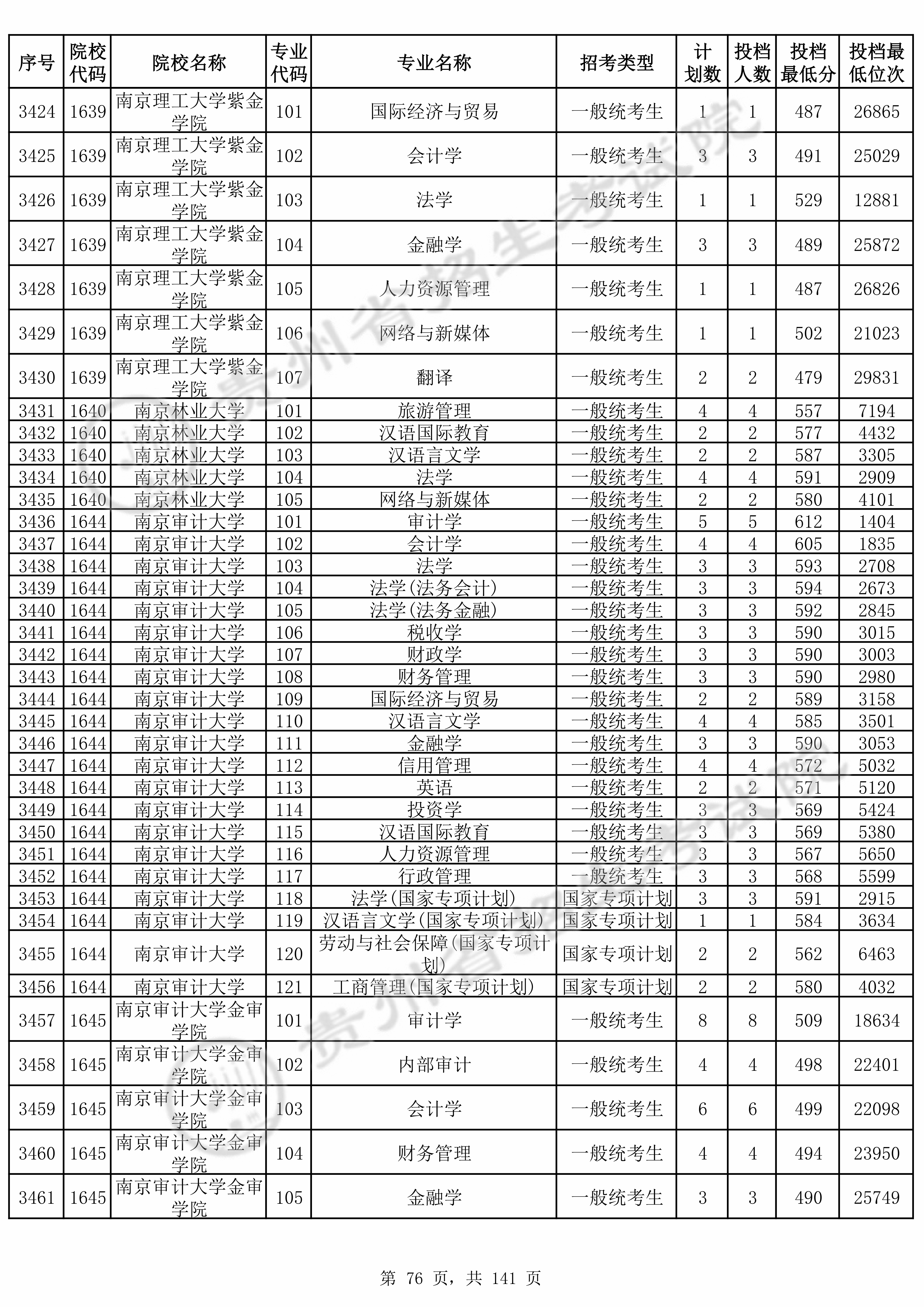 2025年贵州高考普通类本科批 南京理工大学紫金学院 的 金融学 专业录取分数溯源信息