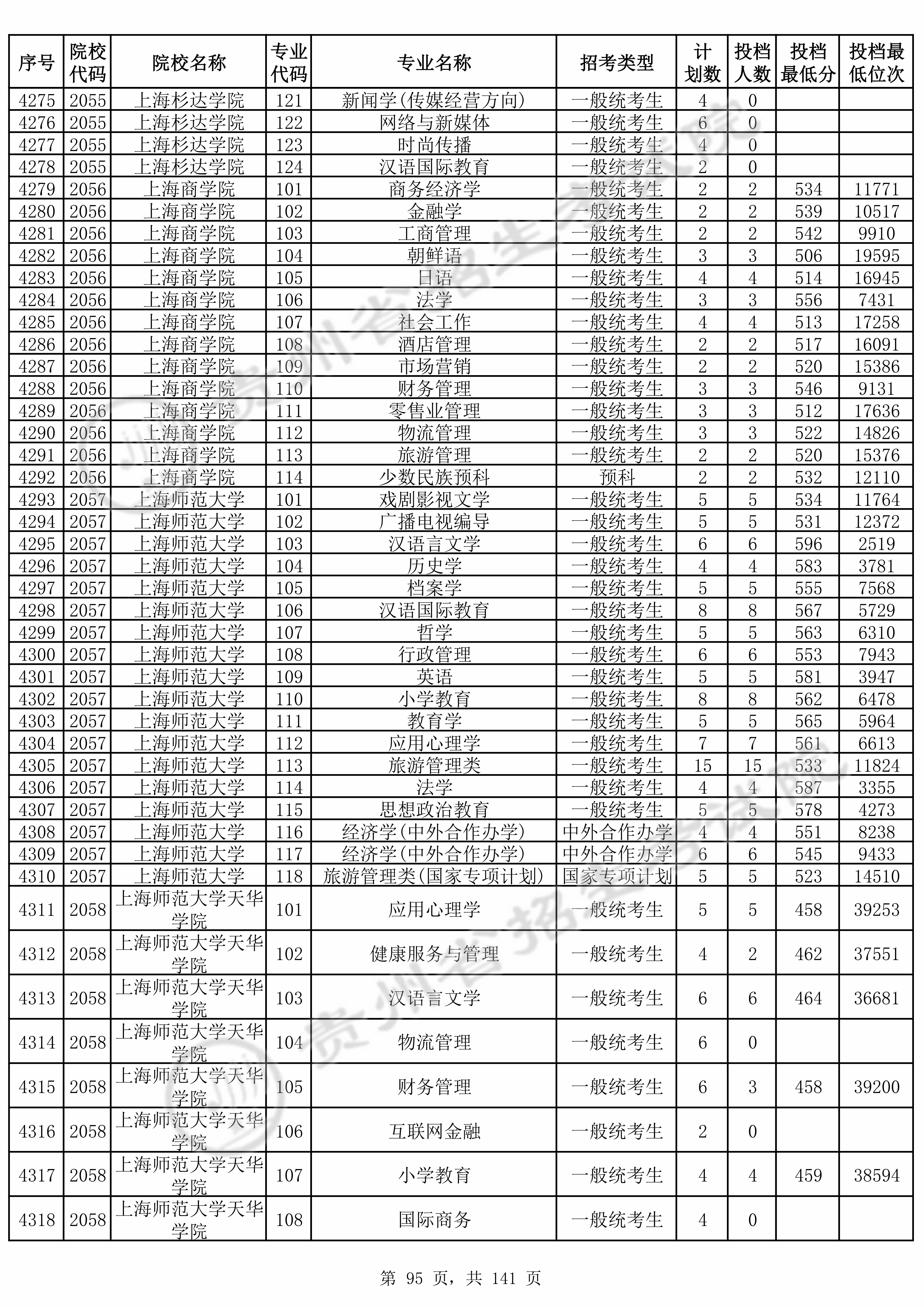 2025年贵州高考普通类本科批 上海师范大学天华学院 的 国际商务 专业录取分数溯源信息