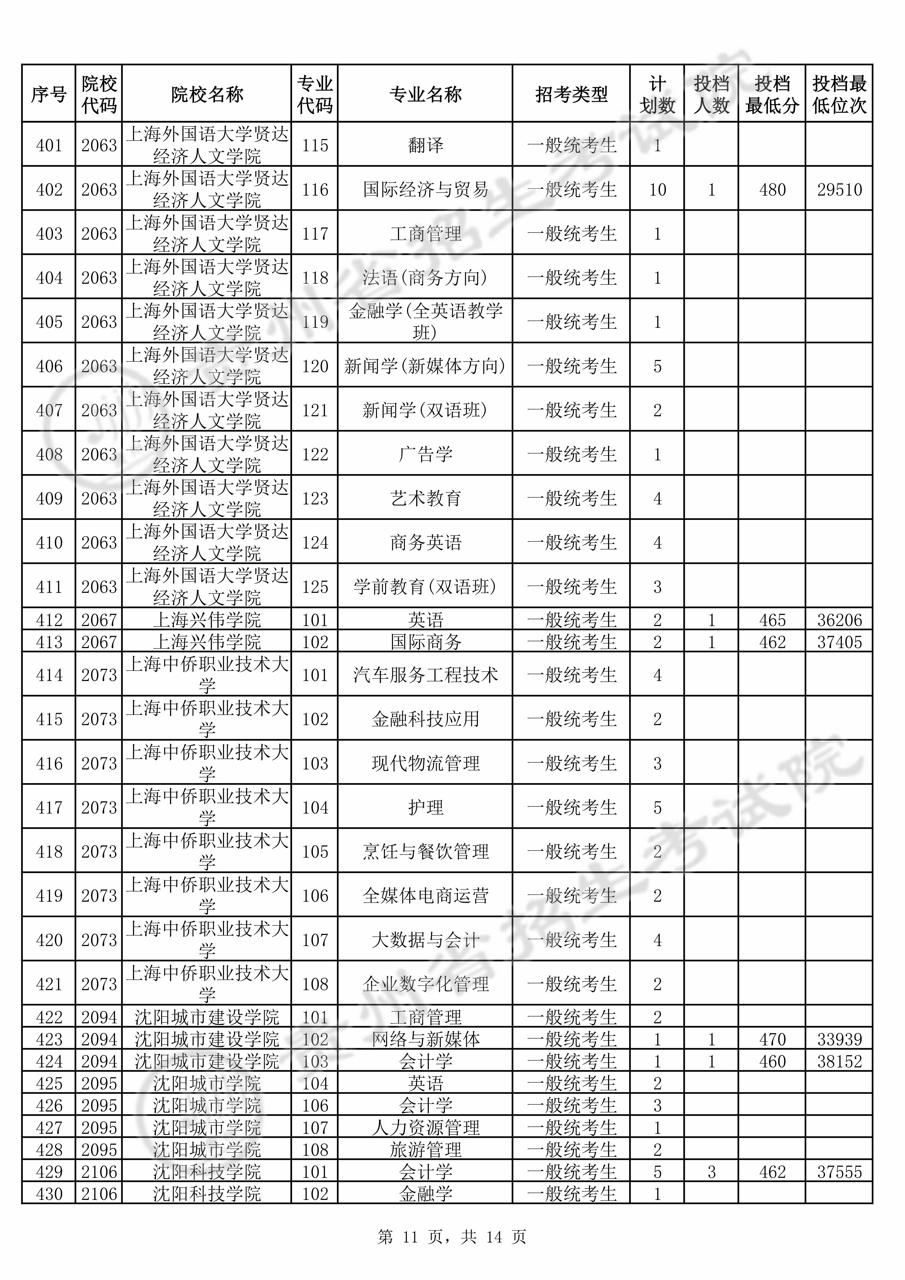 | 2106 | 沈阳科技学院 | 101 | 会计学 | 458 | 38923 | 本科 | 历史 ,再选: 不限 | 1,2,3 |