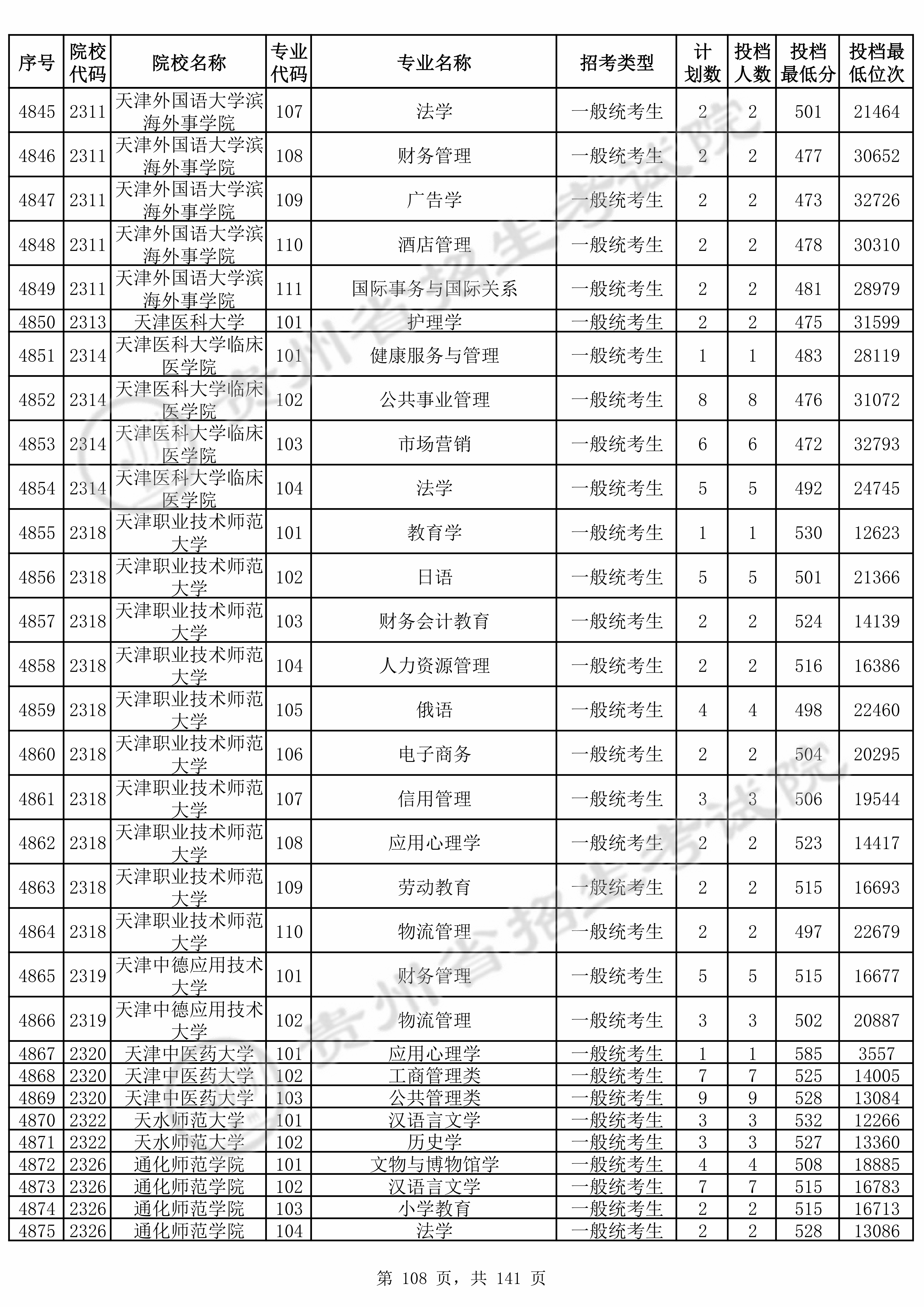 2025年贵州高考普通类本科批 天津职业技术师范大学 的 日语 专业录取分数溯源信息