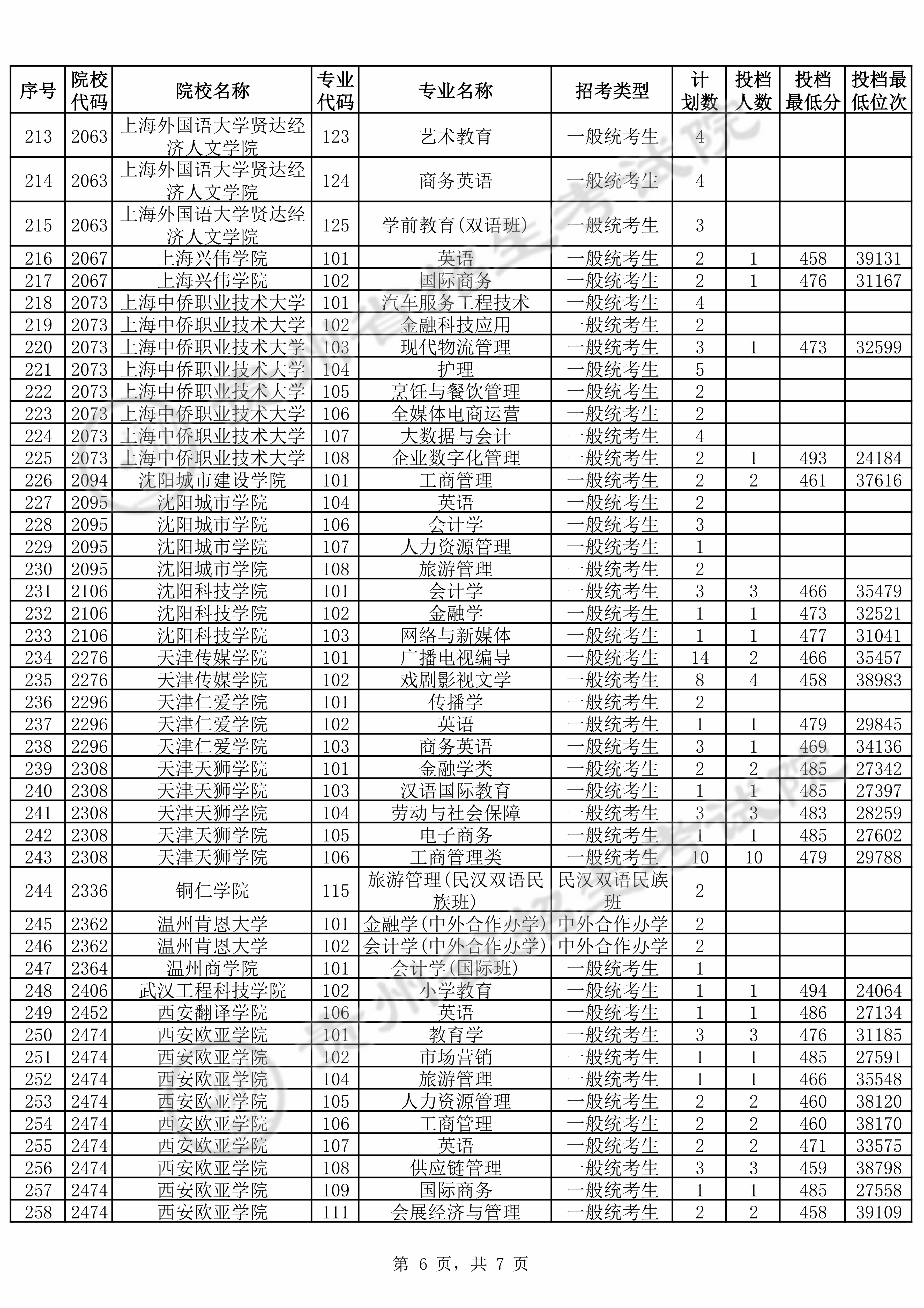 | 院校代码 | 院校名称 | 专业代码 | 专业名称 | 最低分数 | 最低位次 | 专业层次 | 限考科目 | 投档 |