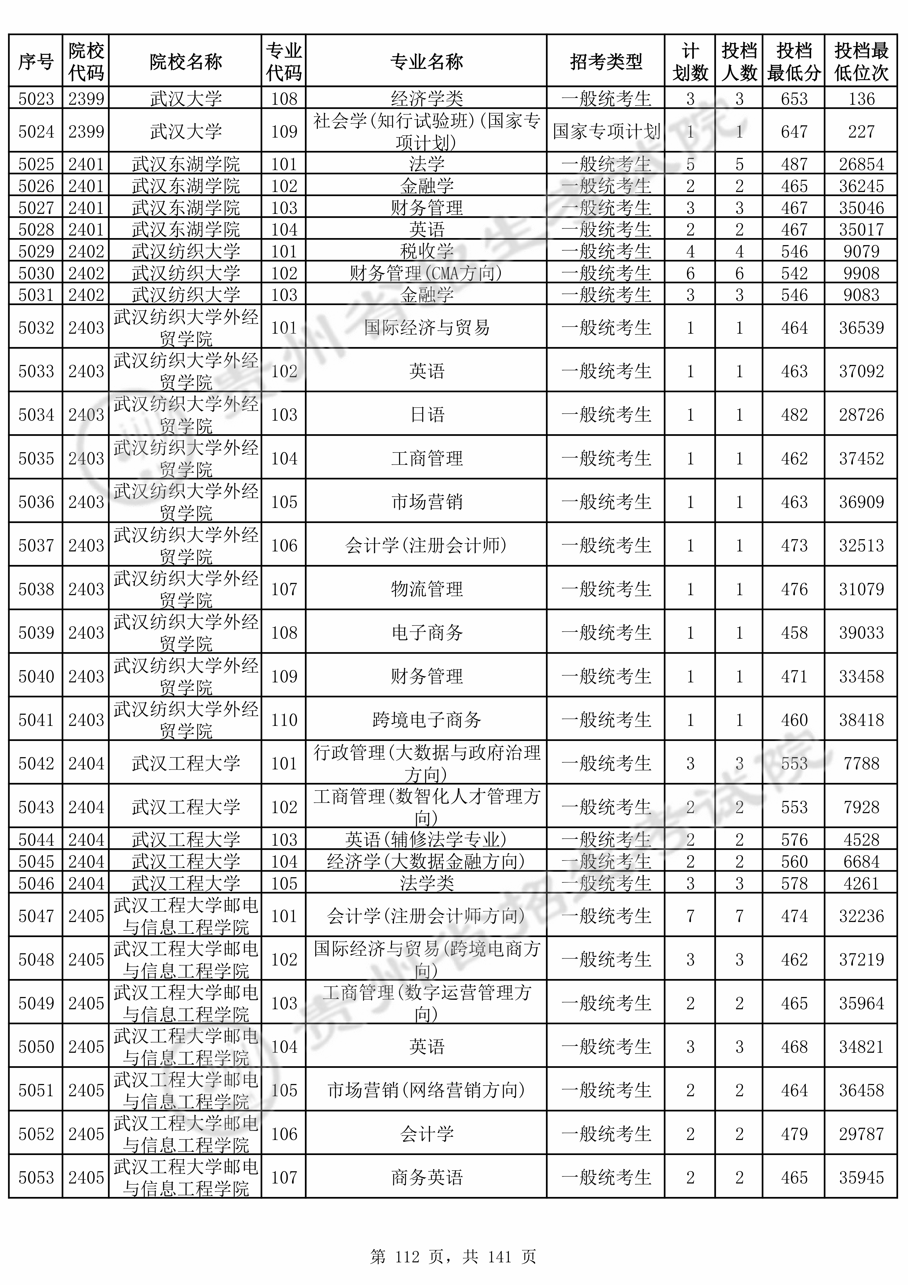 2025年贵州高考普通类本科批 武汉工程大学 的 行政管理 专业录取分数溯源信息
