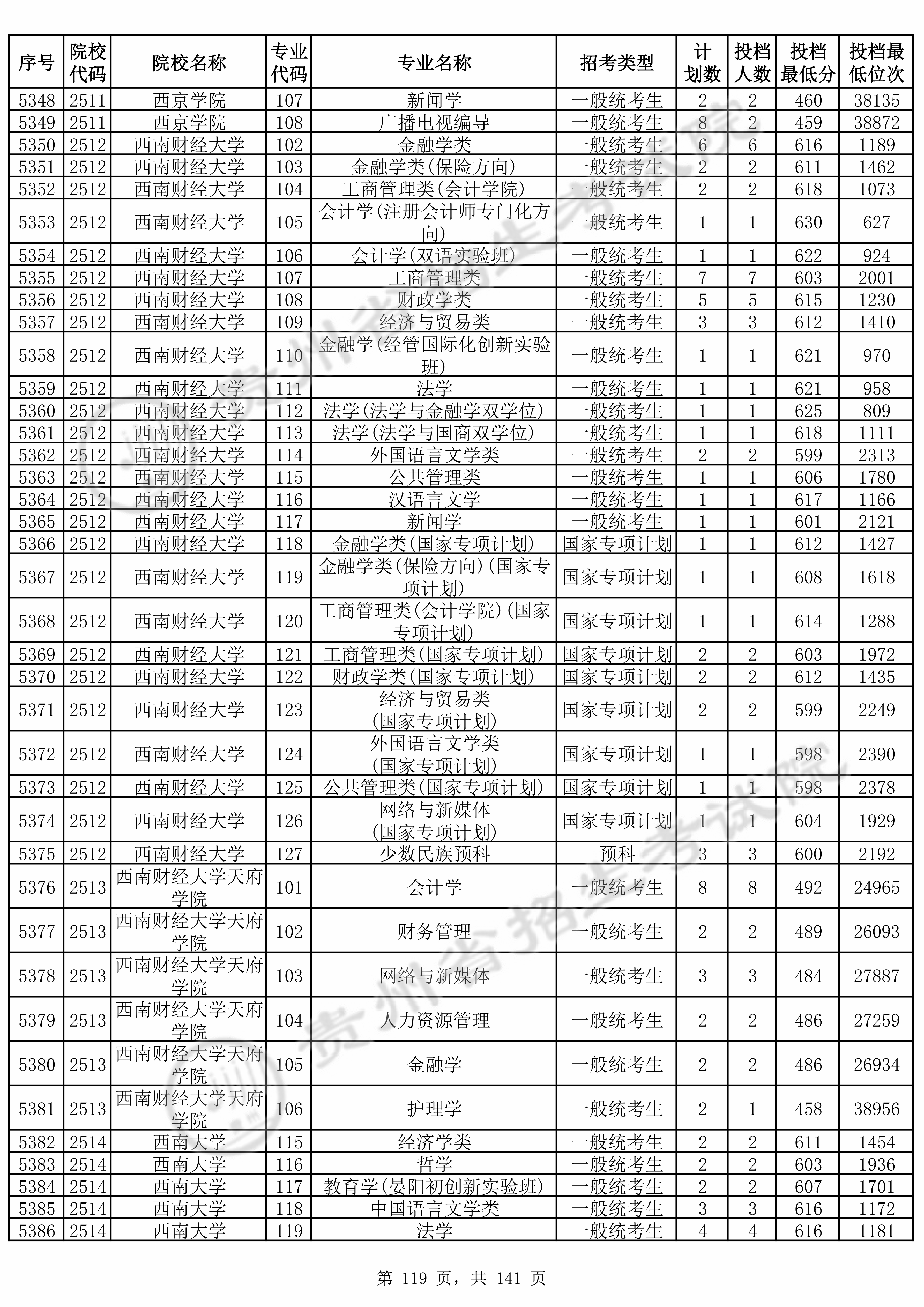 2025年贵州高考普通类本科批 西南大学 的 教育学 专业录取分数溯源信息