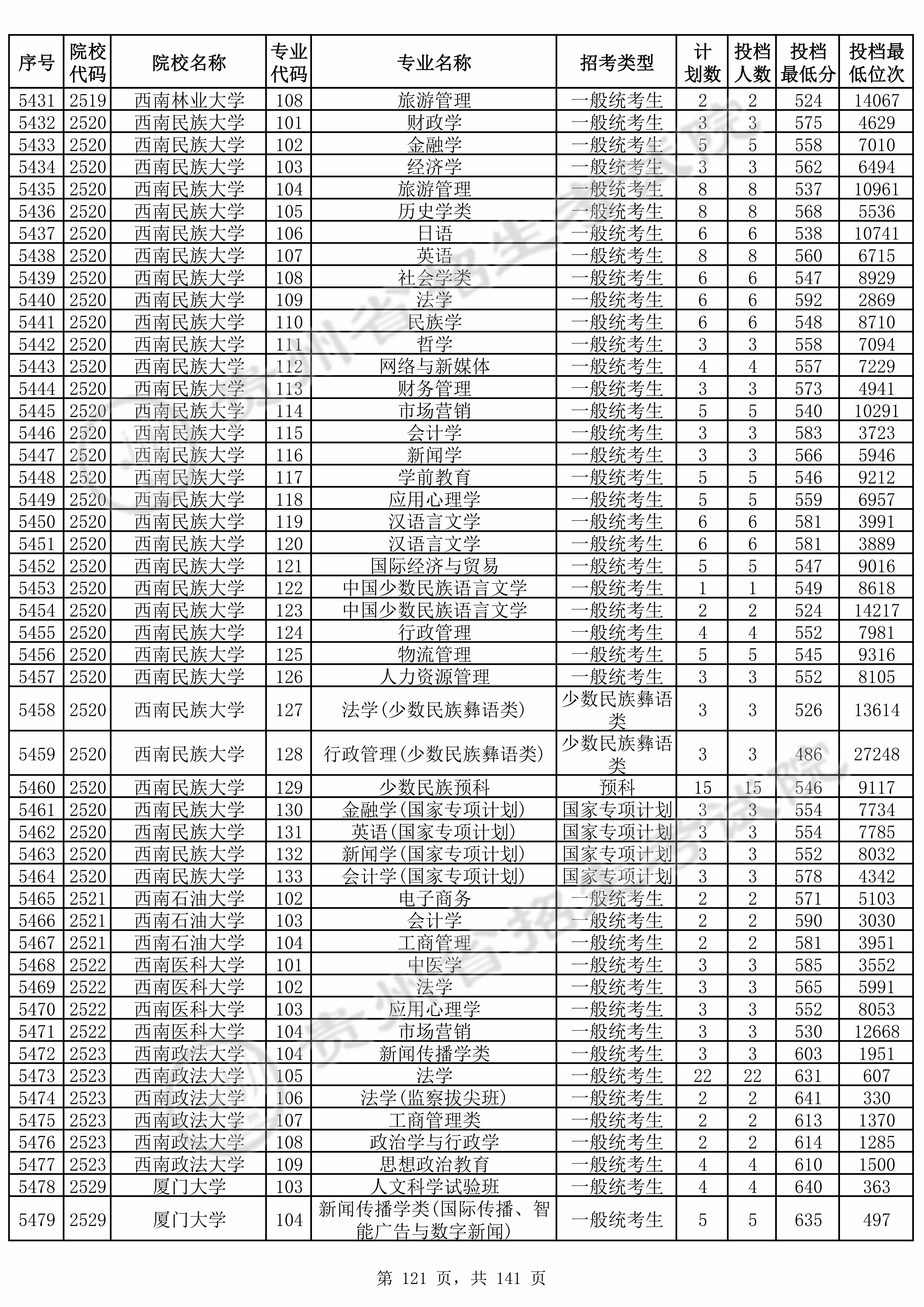 2025年贵州高考普通类本科批 西南民族大学 的 历史学类 专业录取分数溯源信息