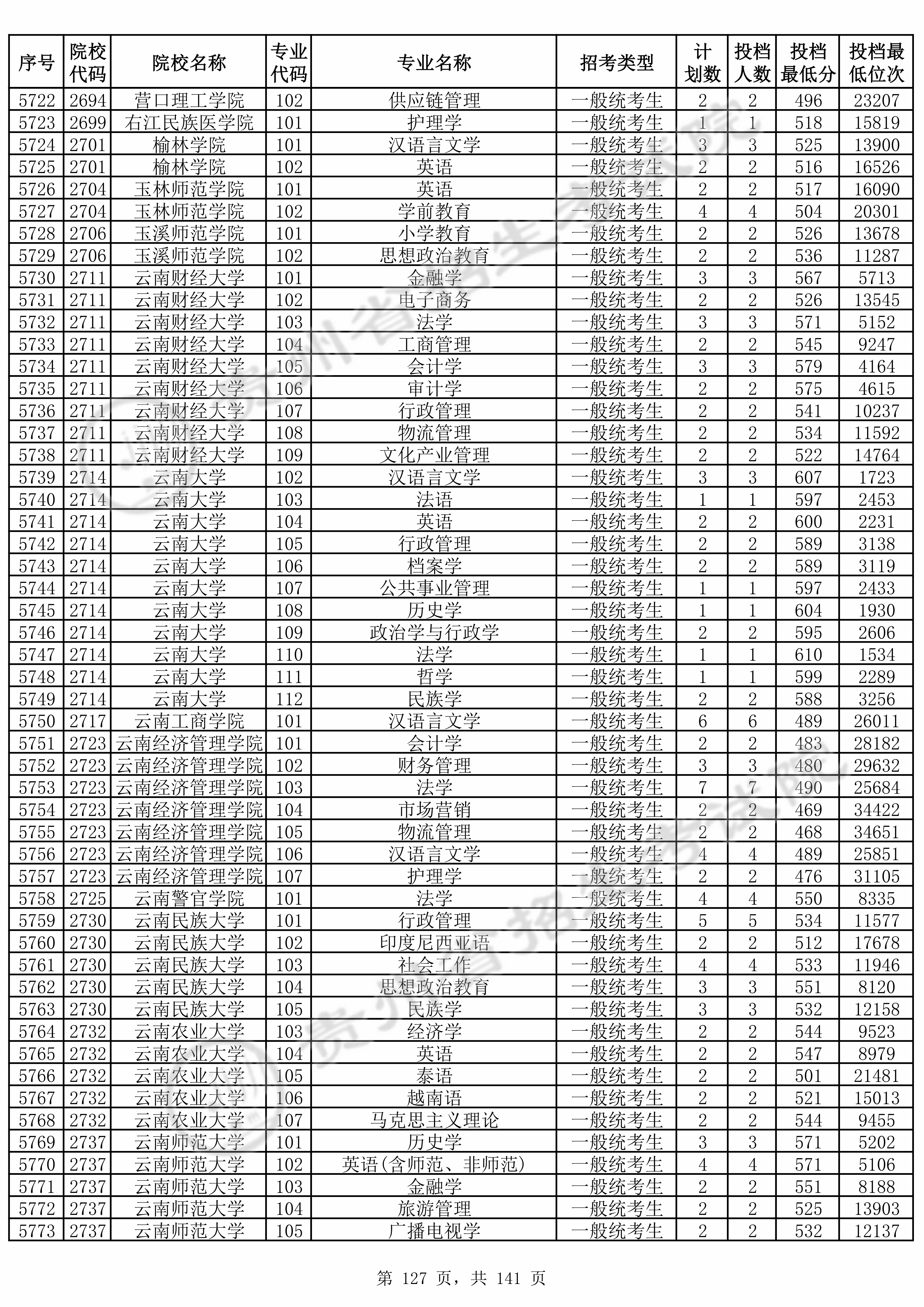 | 院校代码 | 院校名称 | 专业代码 | 专业名称 | 最低分数 | 最低位次 | 专业层次 | 限考科目 | 投档 |