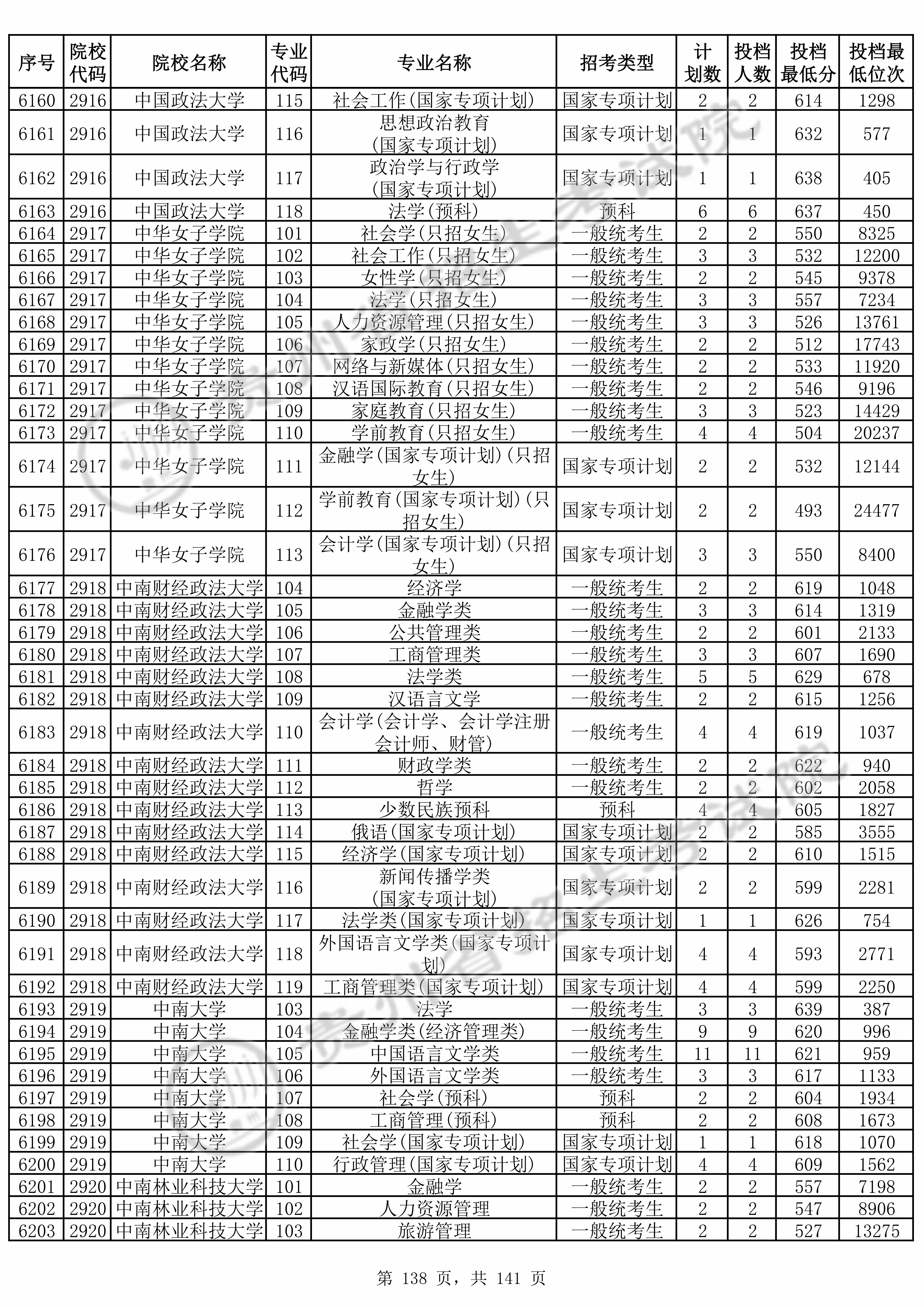 | 2920 | 中南林业科技大学 | 101 | 金融学 | 557 | 7198 | 本科 | 历史 ,再选: 不限 | 1 |