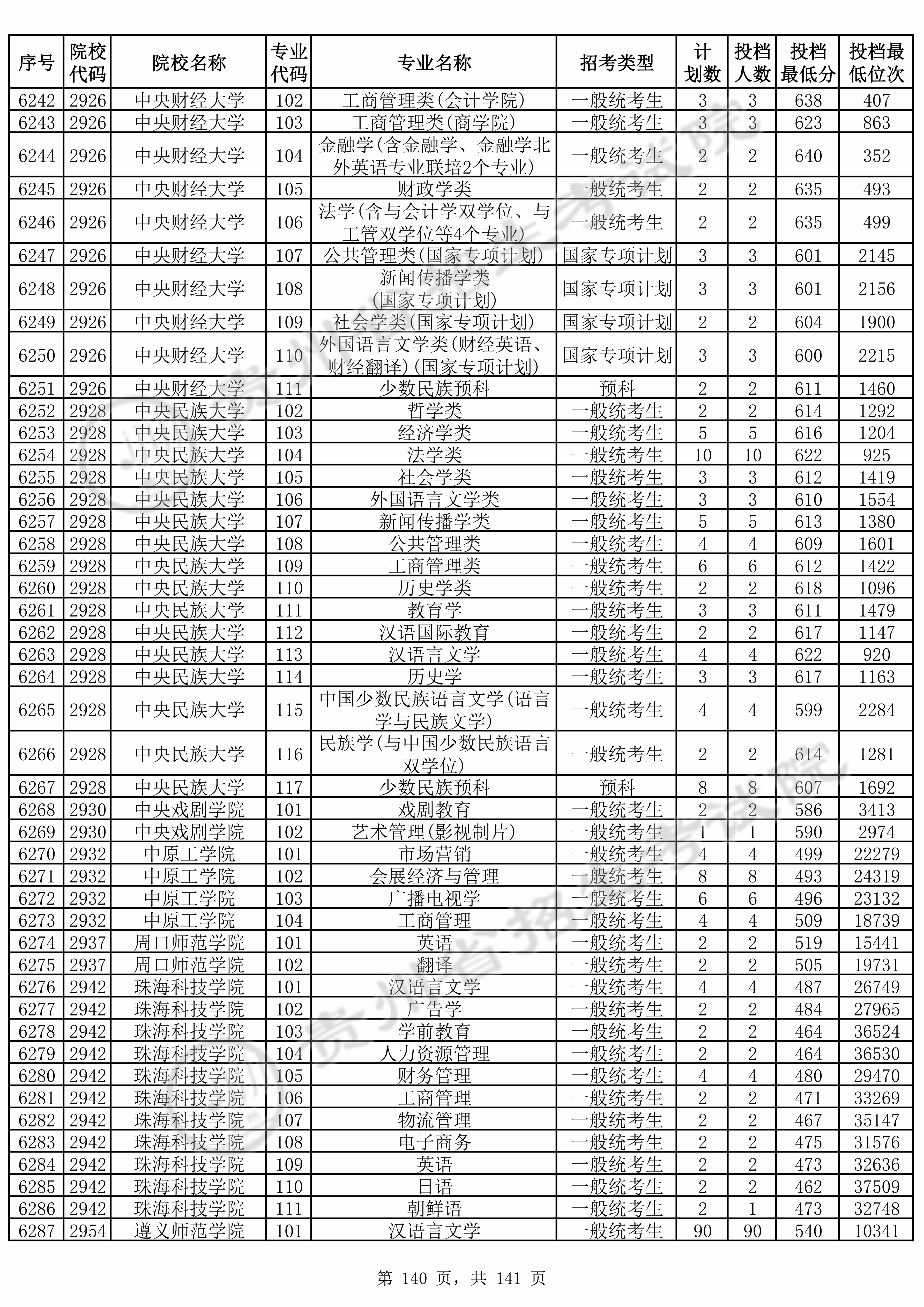 | 院校代码 | 院校名称 | 专业代码 | 专业名称 | 最低分数 | 最低位次 | 专业层次 | 限考科目 | 投档 |