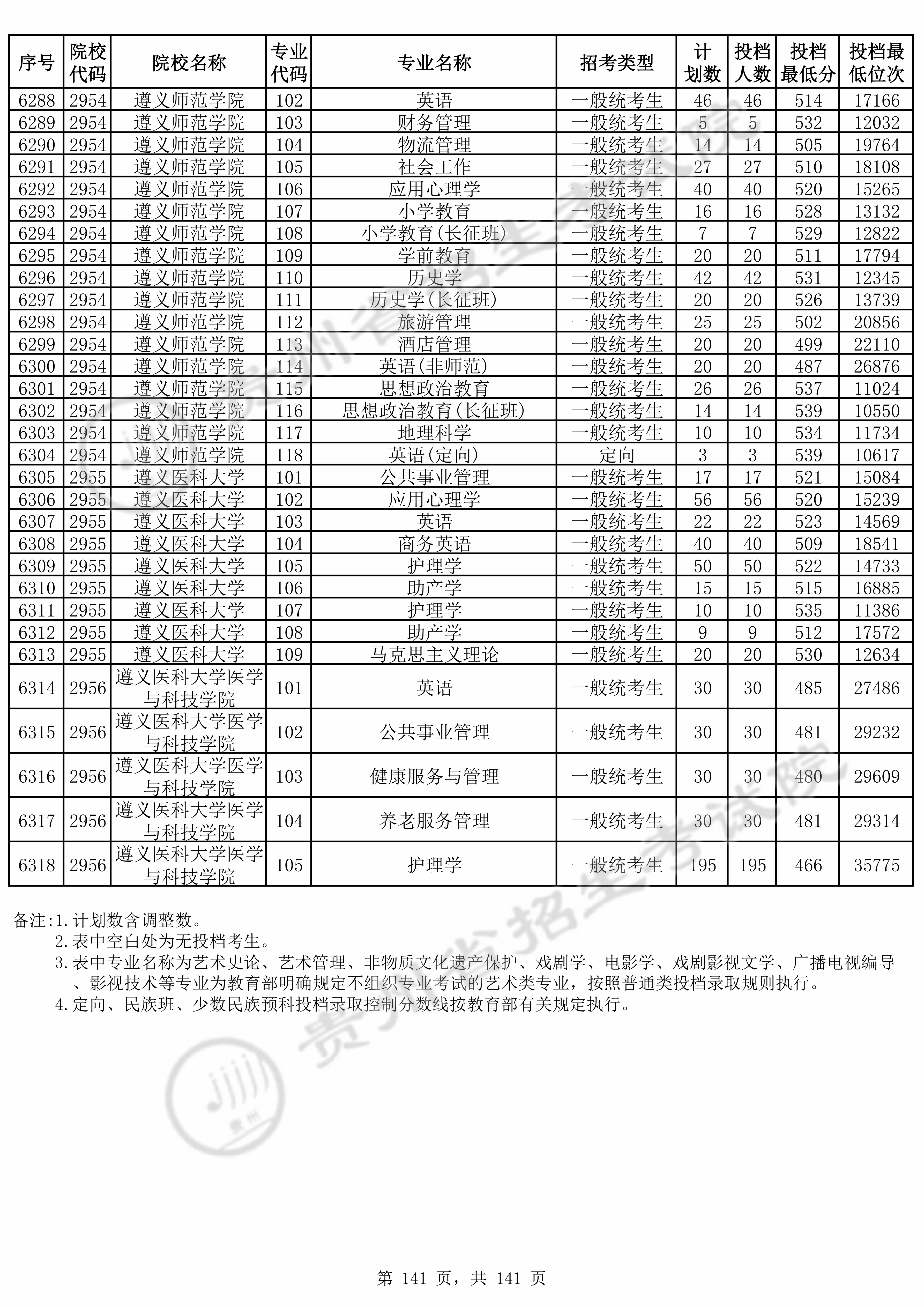 2025年贵州高考普通类本科批 遵义医科大学医学与科技学院 的 英语 专业录取分数溯源信息