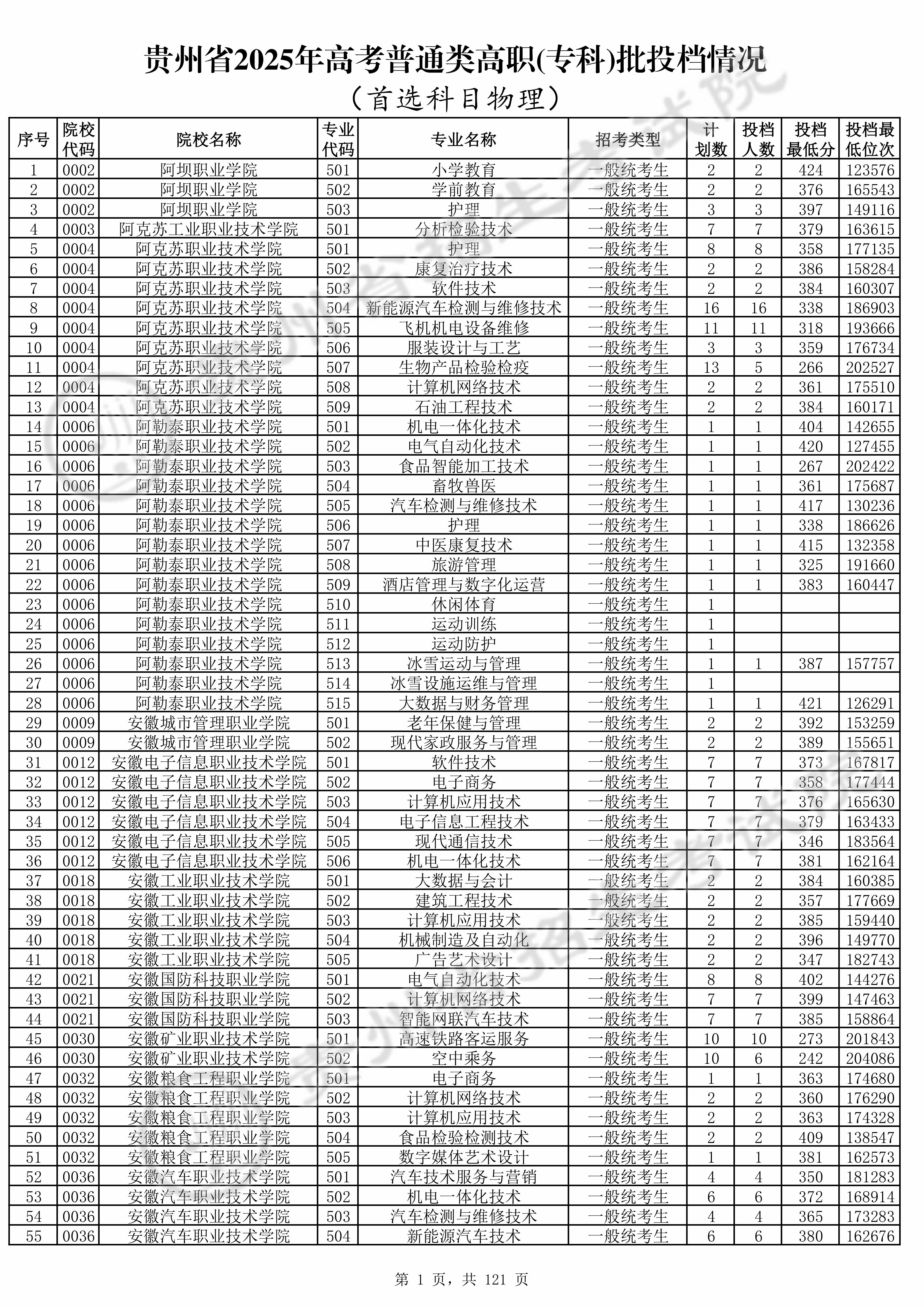 | 0009 | 安徽城市管理职业学院 | 501 | 老年保健与管理 | 392 | 153259 | 专科 | 物理 ,再选: 不限 | 1 |