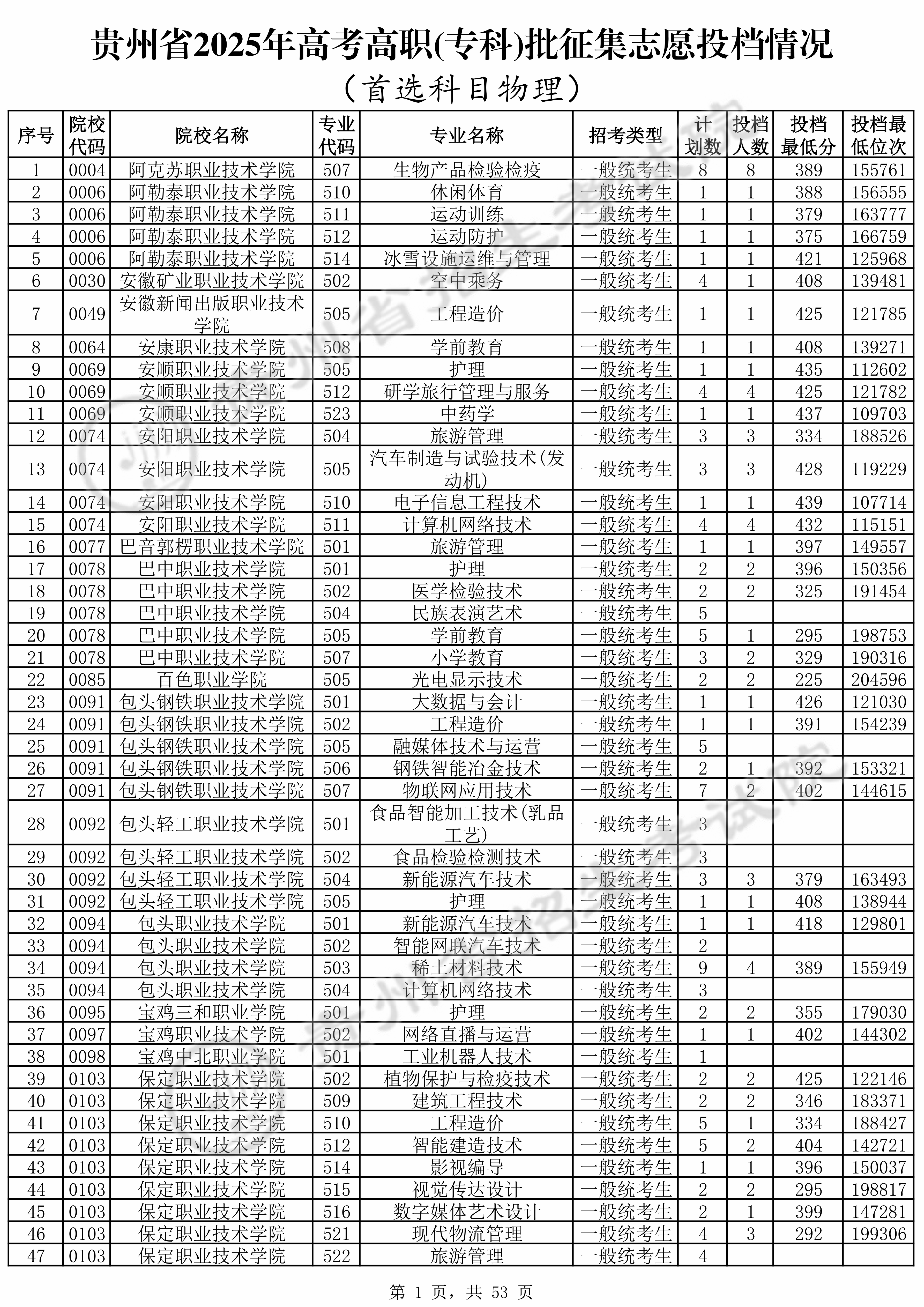 | 普通类高职(专科)批 第1次征集志愿投档录取原格式数据 |