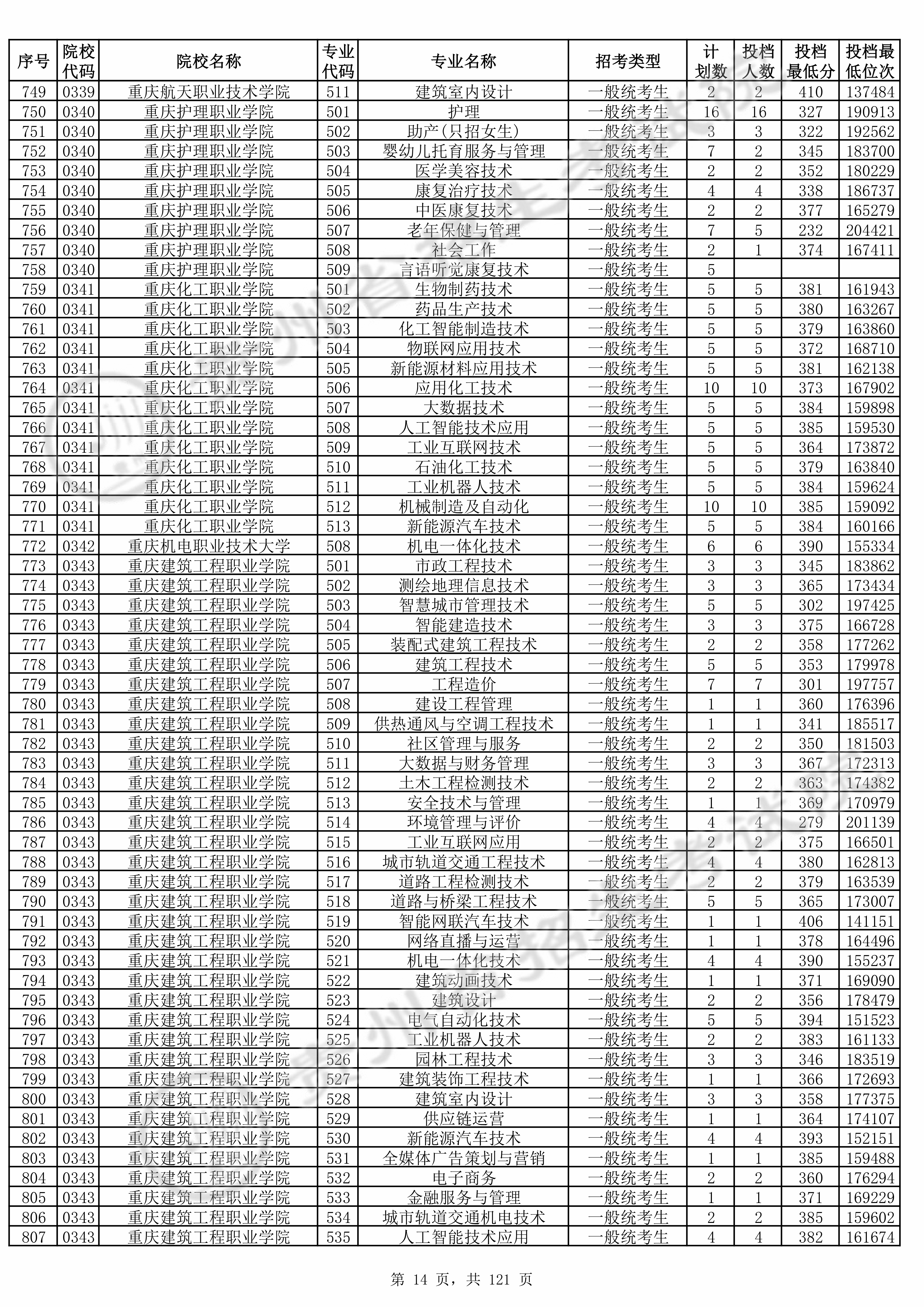| 院校代码 | 院校名称 | 专业代码 | 专业名称 | 最低分数 | 最低位次 | 专业层次 | 限考科目 | 投档 |