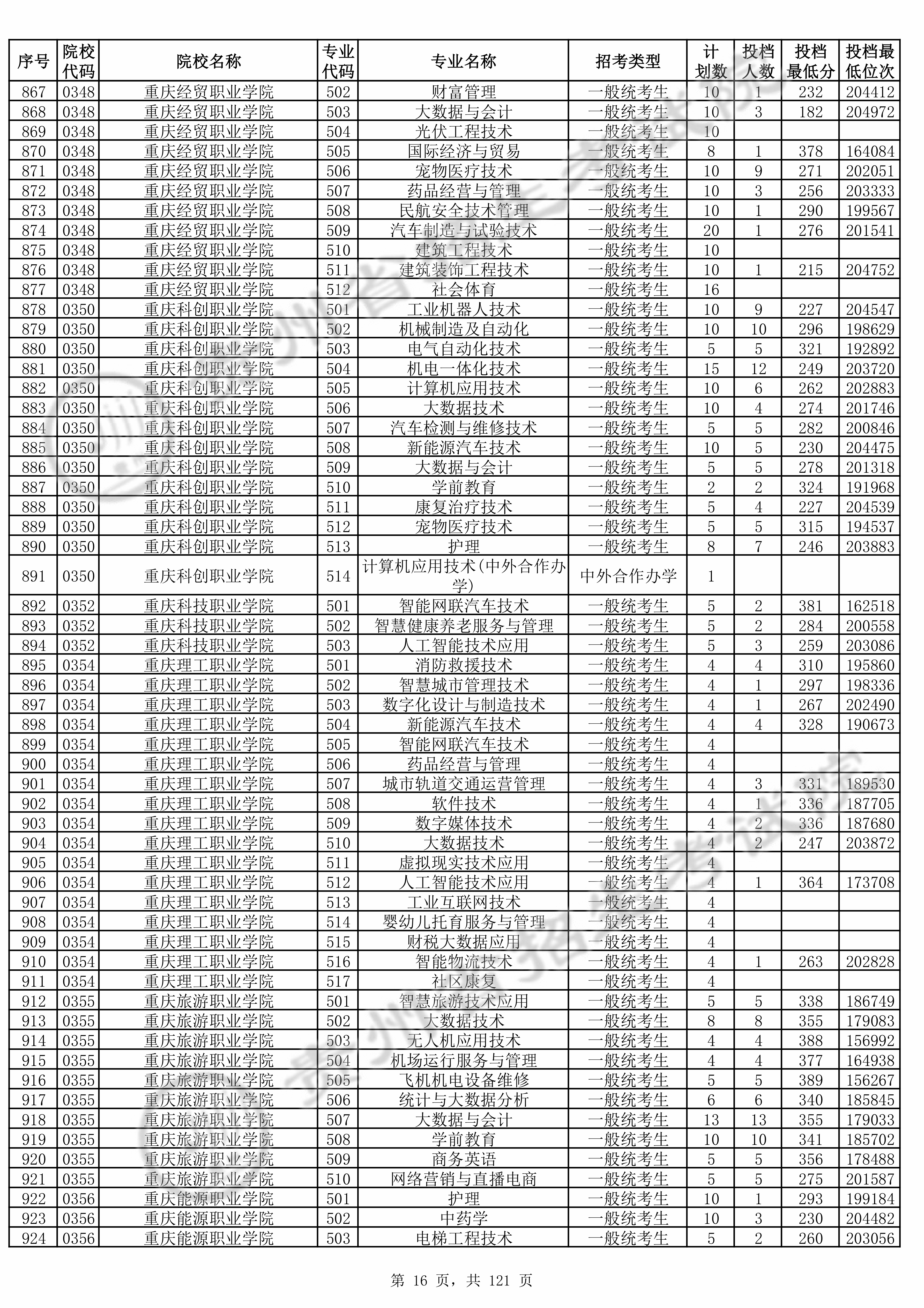 | 0348 | 重庆经贸职业学院 | 509 | 汽车制造与试验技术 | 276 | 201541 | 专科 | 物理 ,再选: 不限 | 1,2,3,4,5 |