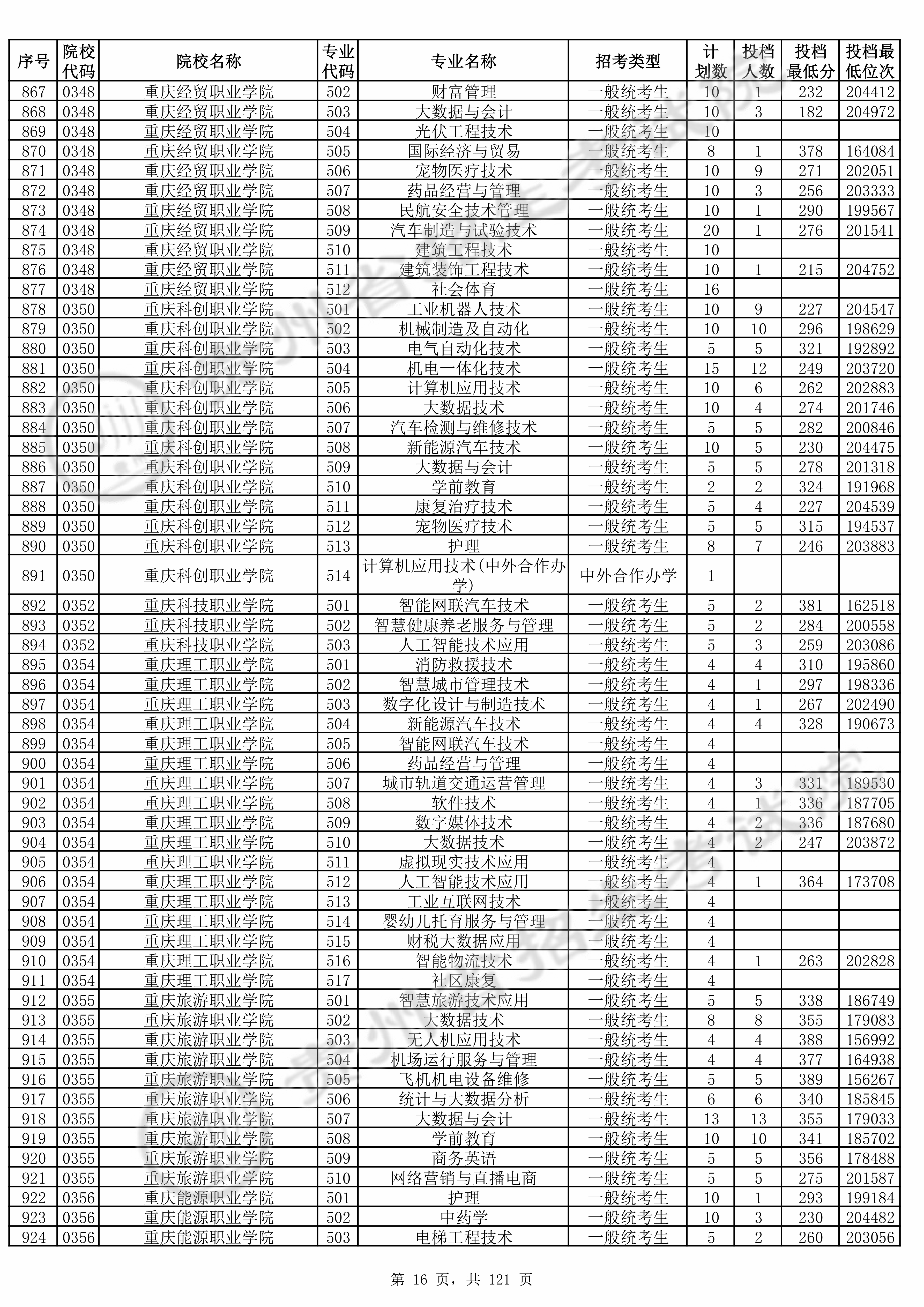 | 0350 | 重庆科创职业学院 | 511 | 康复治疗技术 | 227 | 204539 | 专科 | 物理 ,再选: 不限 | 1,2 |