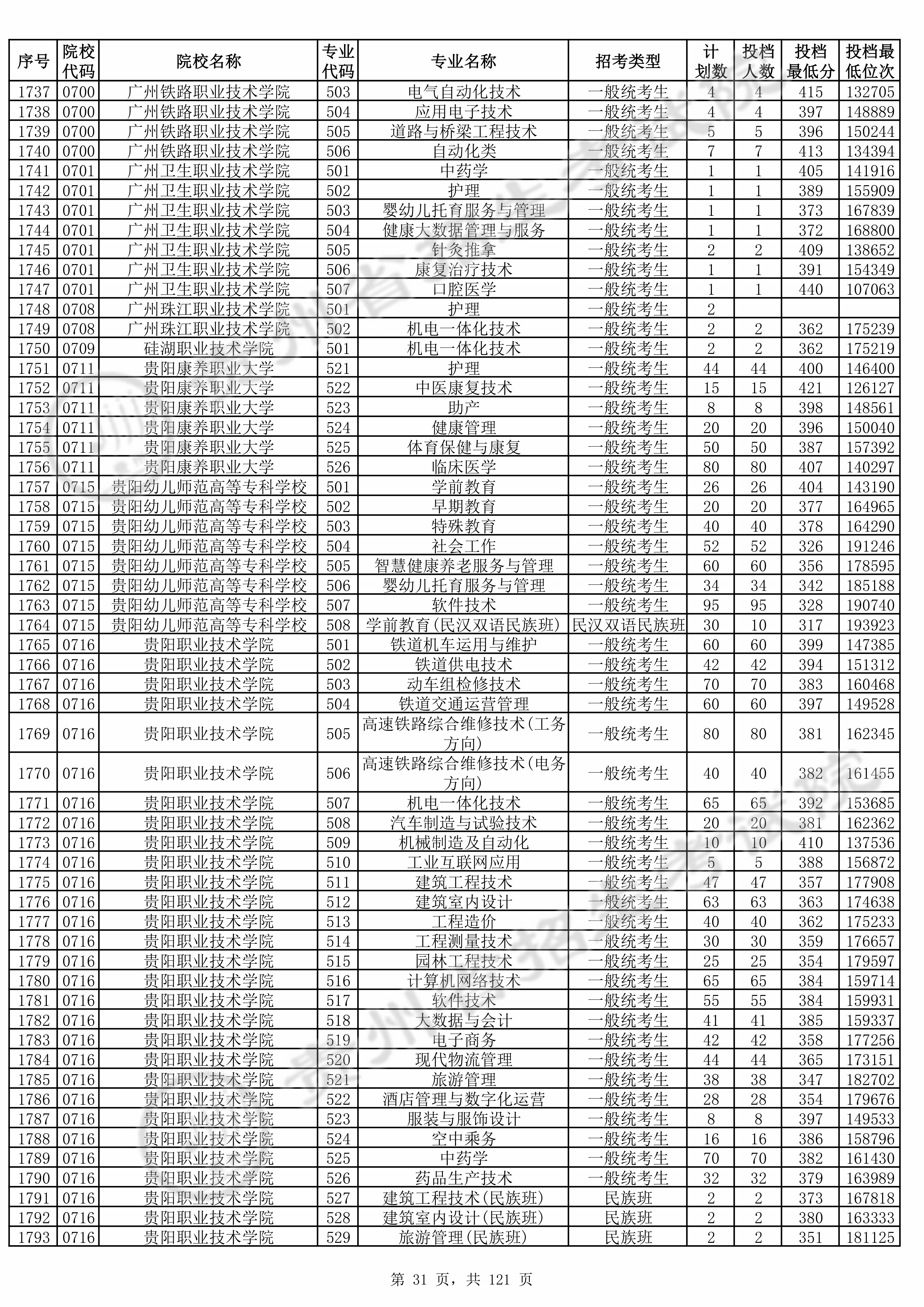 2025年贵州高考普通类高职(专科)批 广州铁路职业技术学院 的 应用电子技术 专业录取分数溯源信息