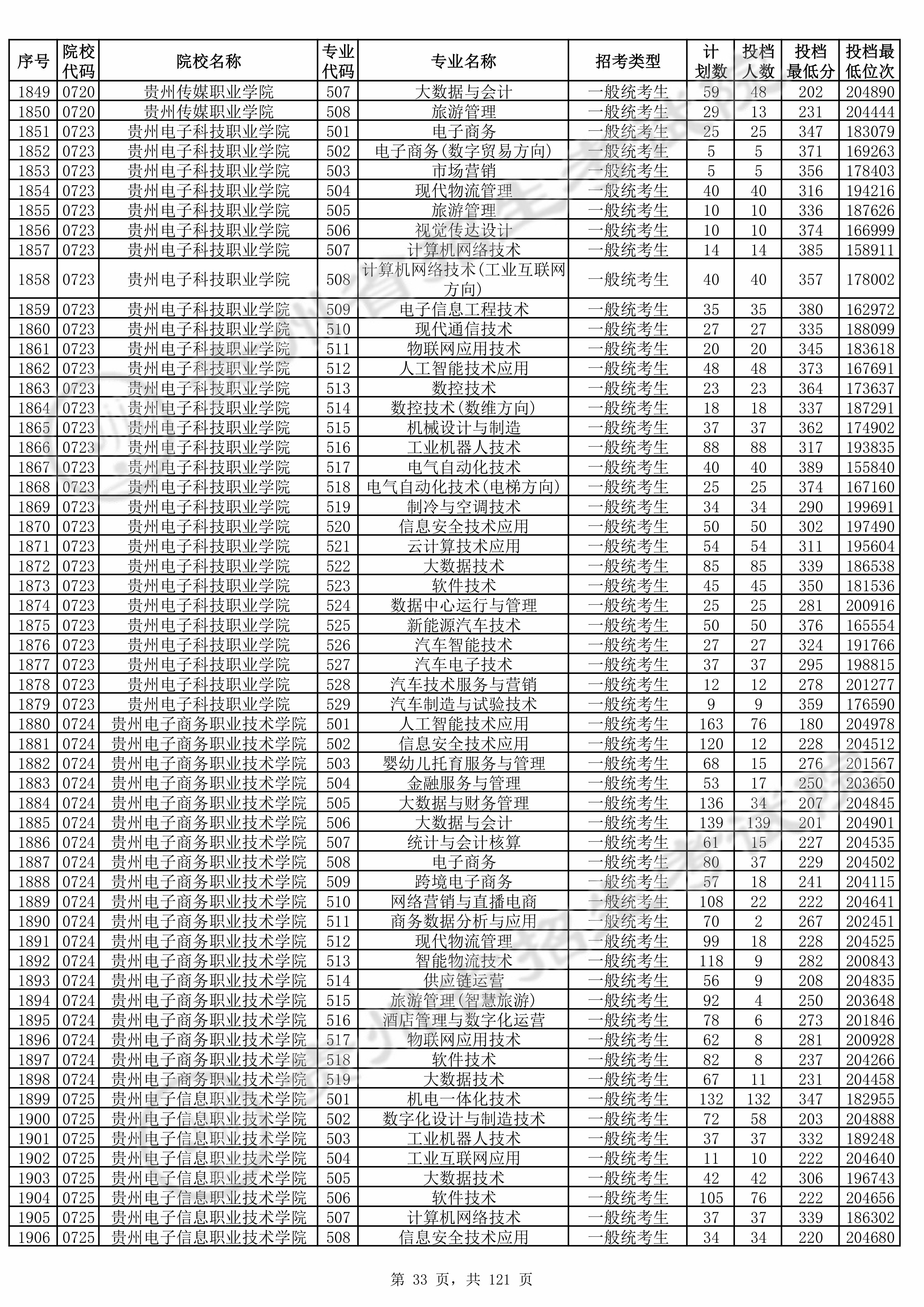 2025年贵州高考普通类高职(专科)批 贵州电子商务职业技术学院 的 大数据与会计 专业录取分数溯源信息