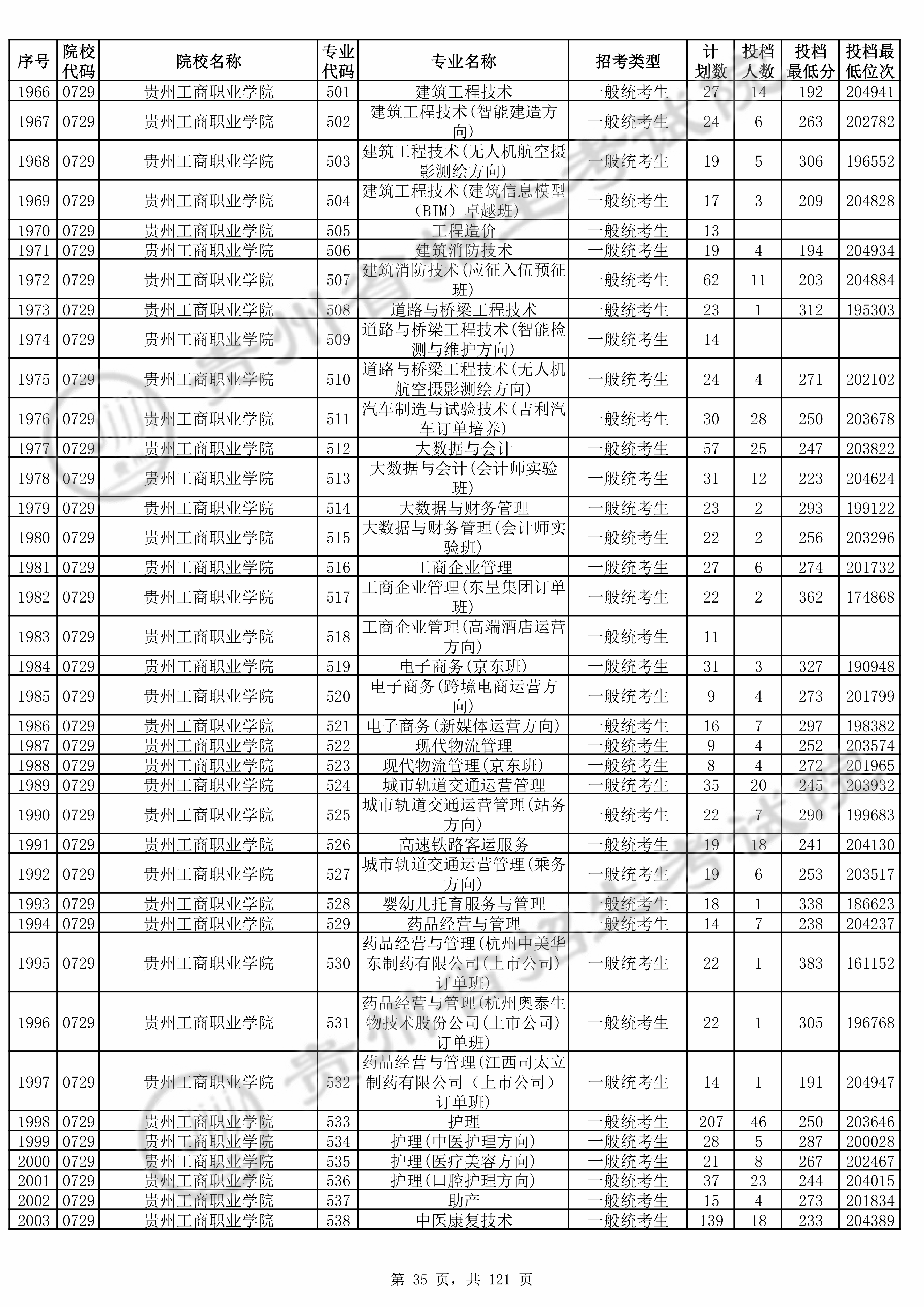 2025年贵州高考普通类高职(专科)批 贵州工商职业学院 的 汽车制造与试验技术 专业录取分数溯源信息