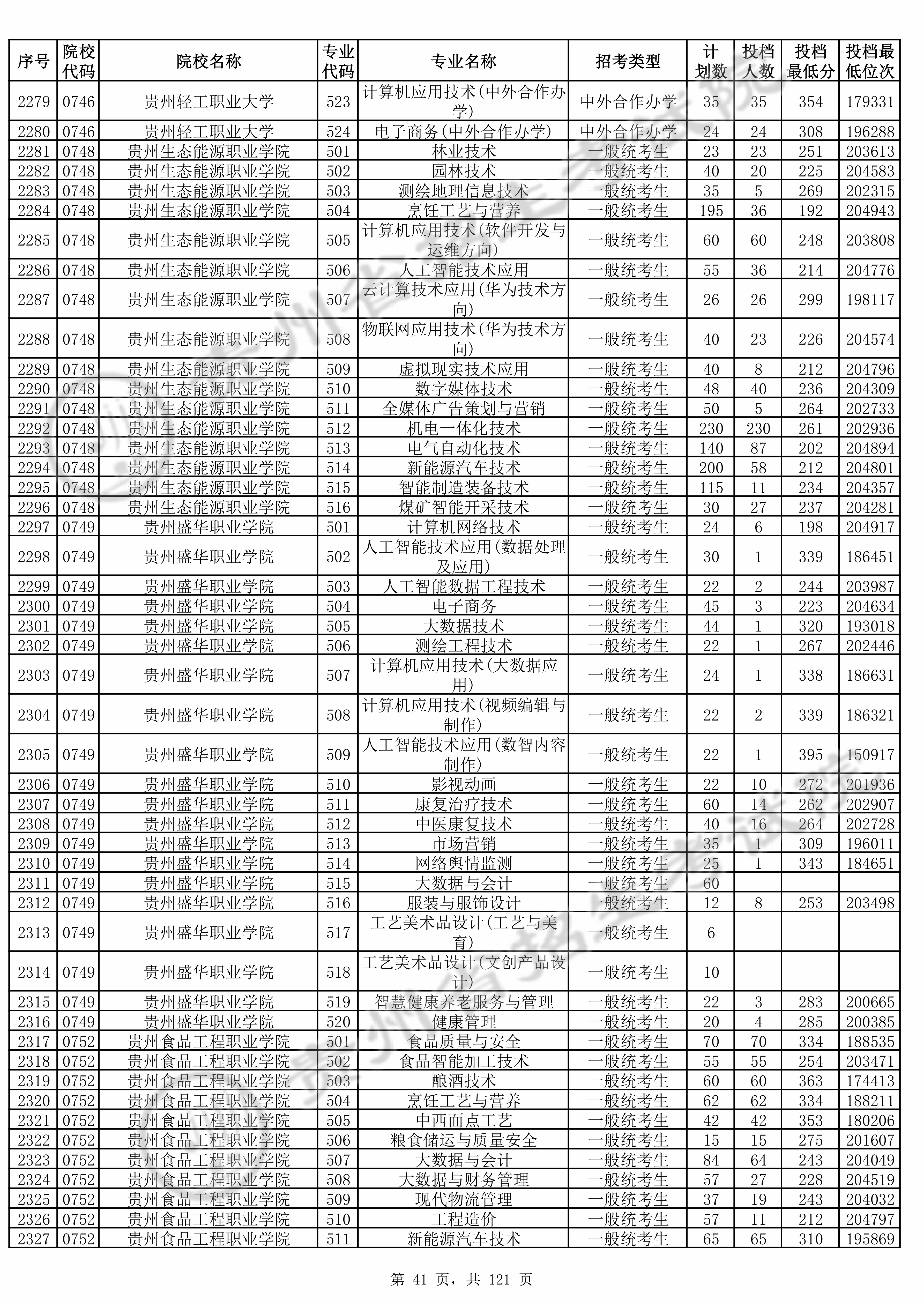 2025年贵州高考普通类高职(专科)批 贵州轻工职业大学 的 计算机应用技术 专业录取分数溯源信息