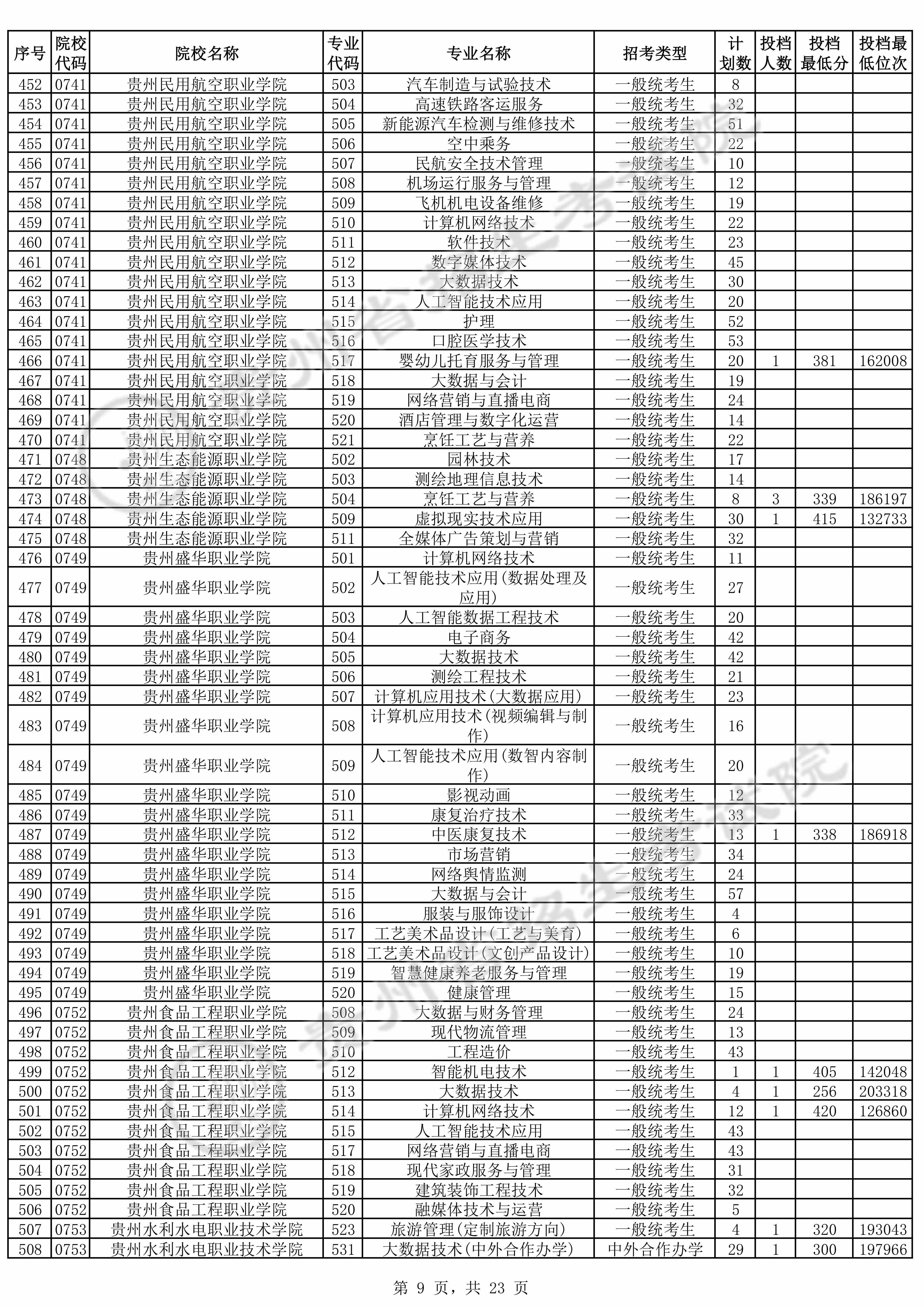 | 0753 | 贵州水利水电职业技术学院 | 523 | 旅游管理(定制旅游方向) | 196 | 204922 | 专科 | 物理 ,再选: 不限 | 1,2,3,4,5 |