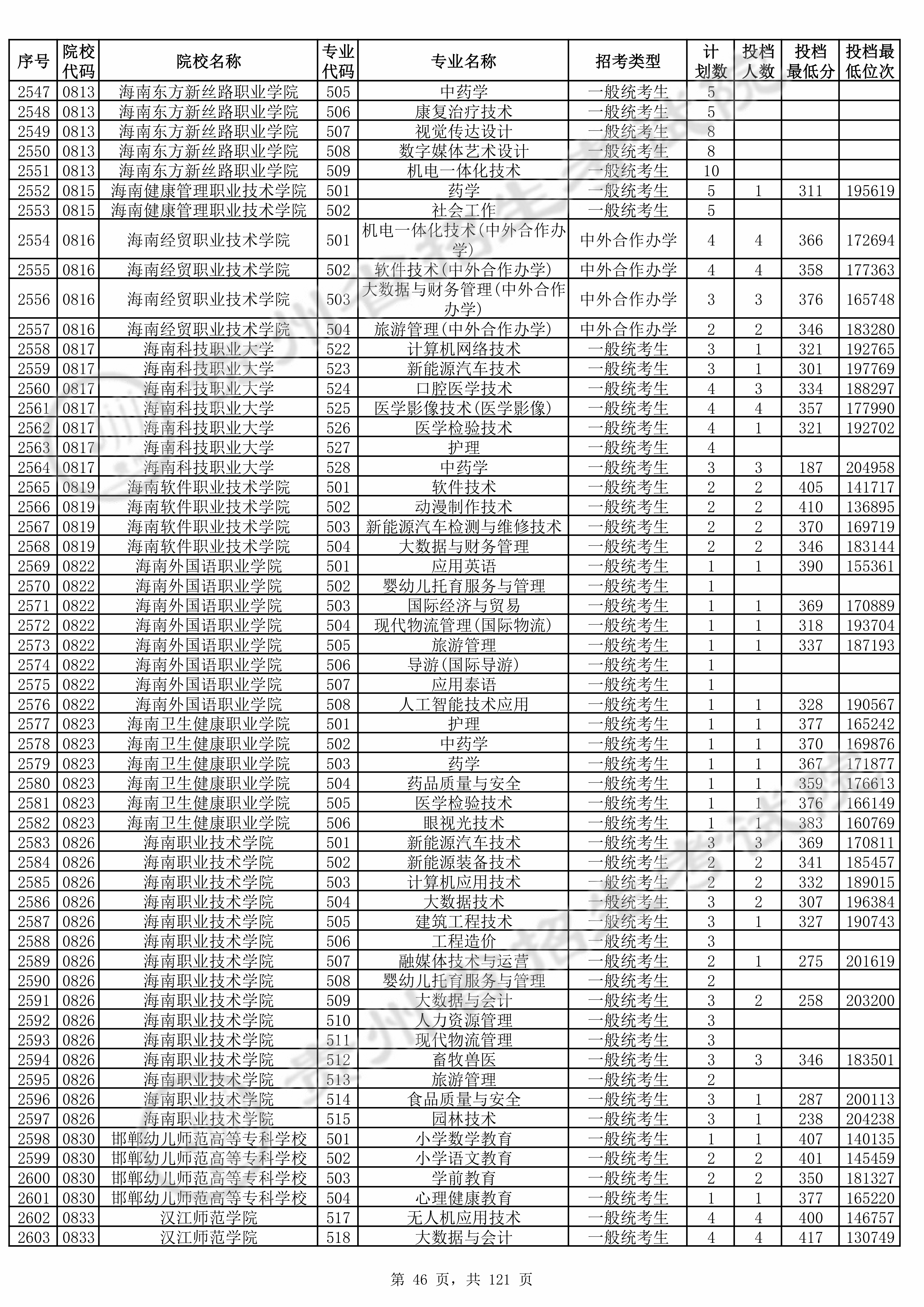 2025年贵州高考普通类高职(专科)批 海南软件职业技术学院 的 软件技术 专业录取分数溯源信息