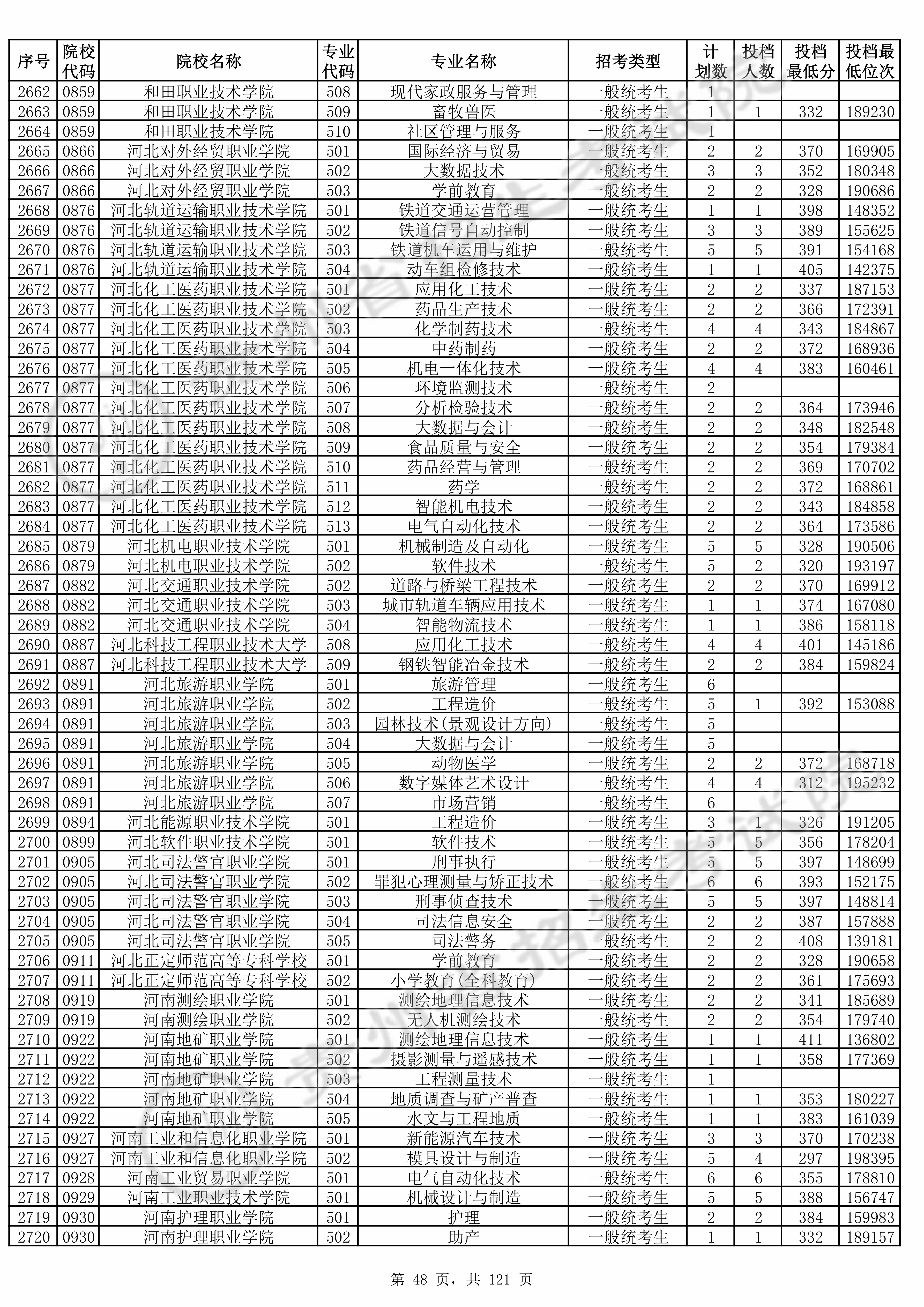 | 普通类高职(专科)批 | ||||||||