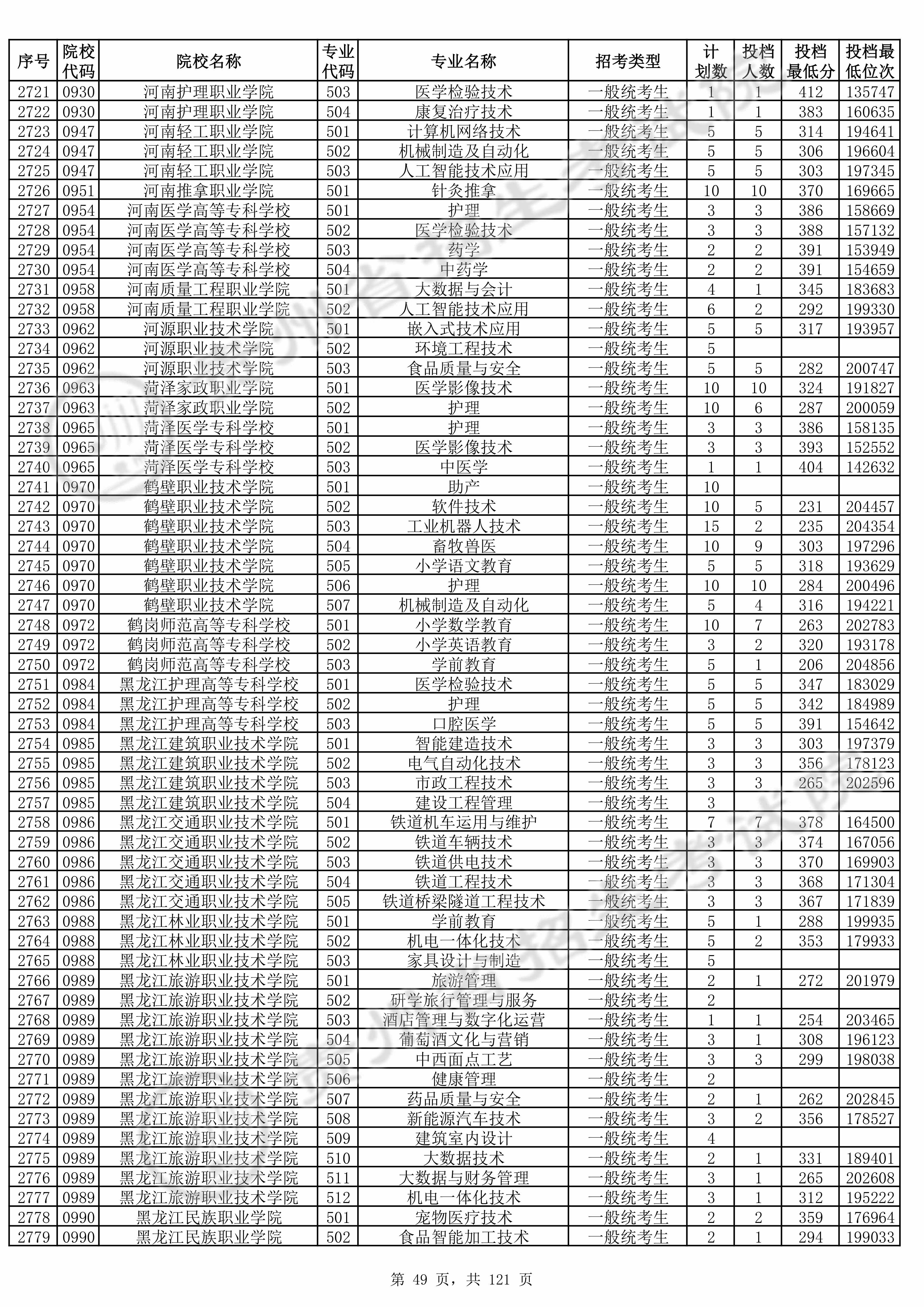 | 院校代码 | 院校名称 | 专业代码 | 专业名称 | 最低分数 | 最低位次 | 专业层次 | 限考科目 | 投档 |