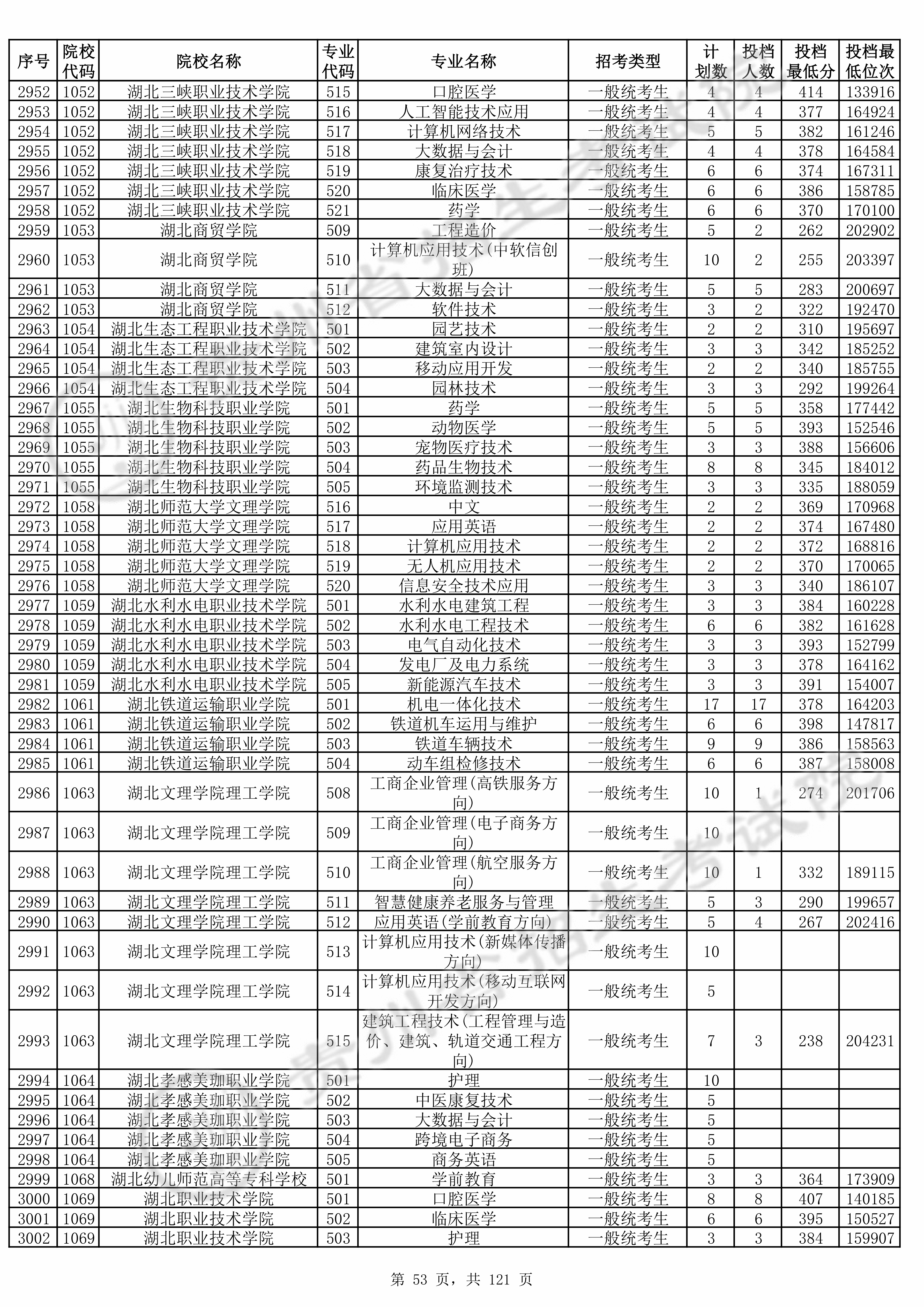 | 普通类高职(专科)批 | ||||||||