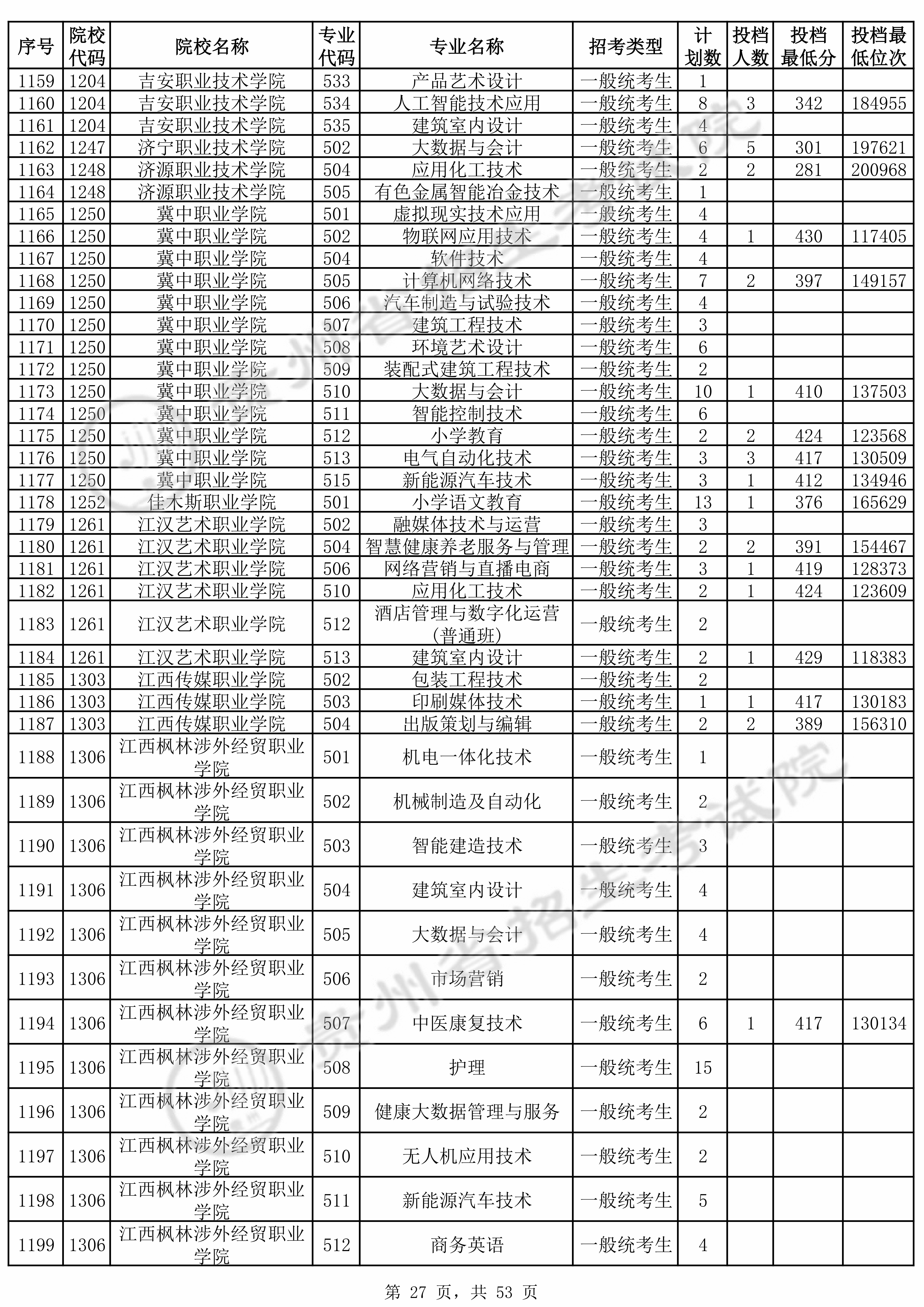| 普通类高职(专科)批 第1次征集志愿投档录取原格式数据 |