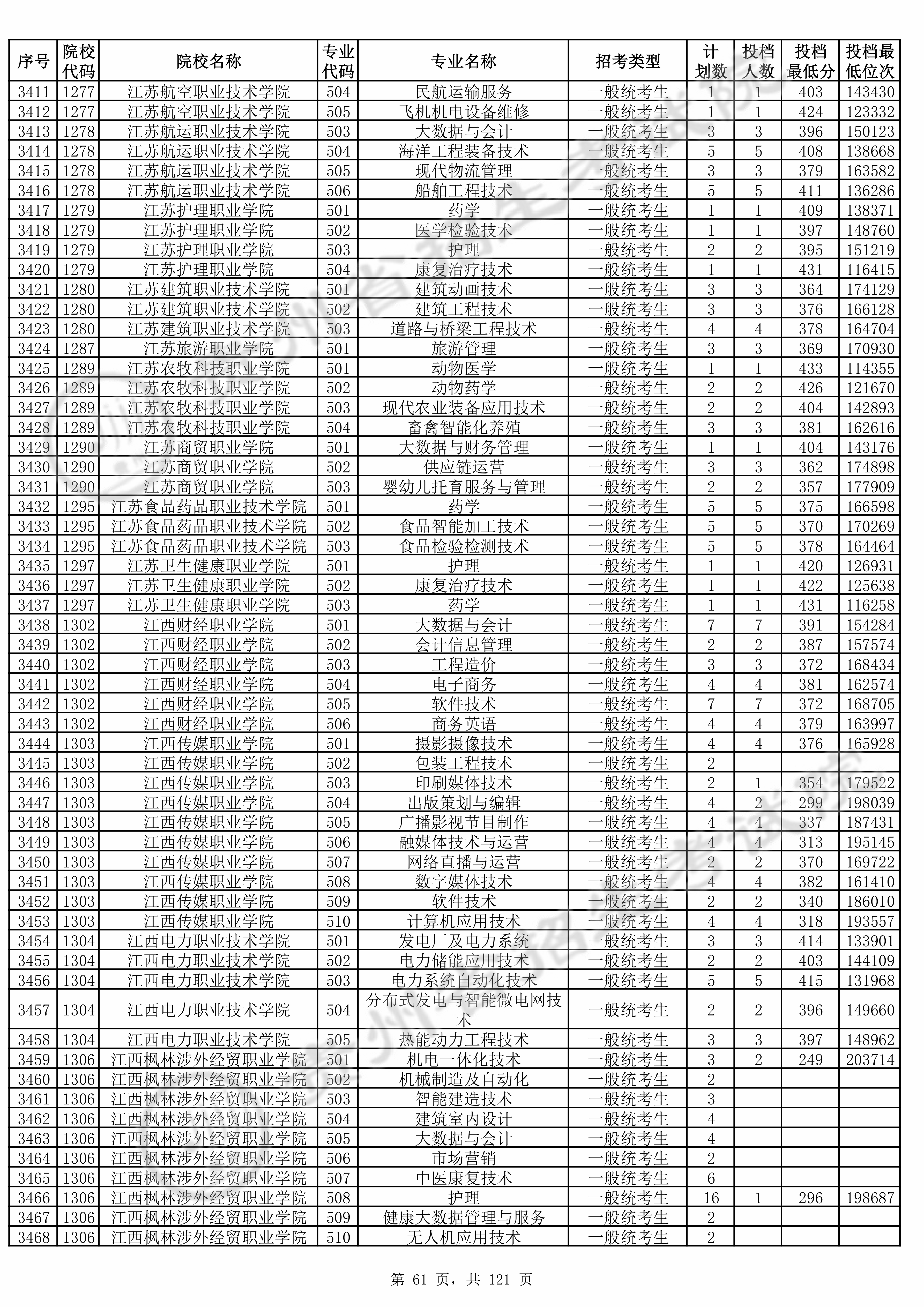 | 普通类高职(专科)批 | ||||||||