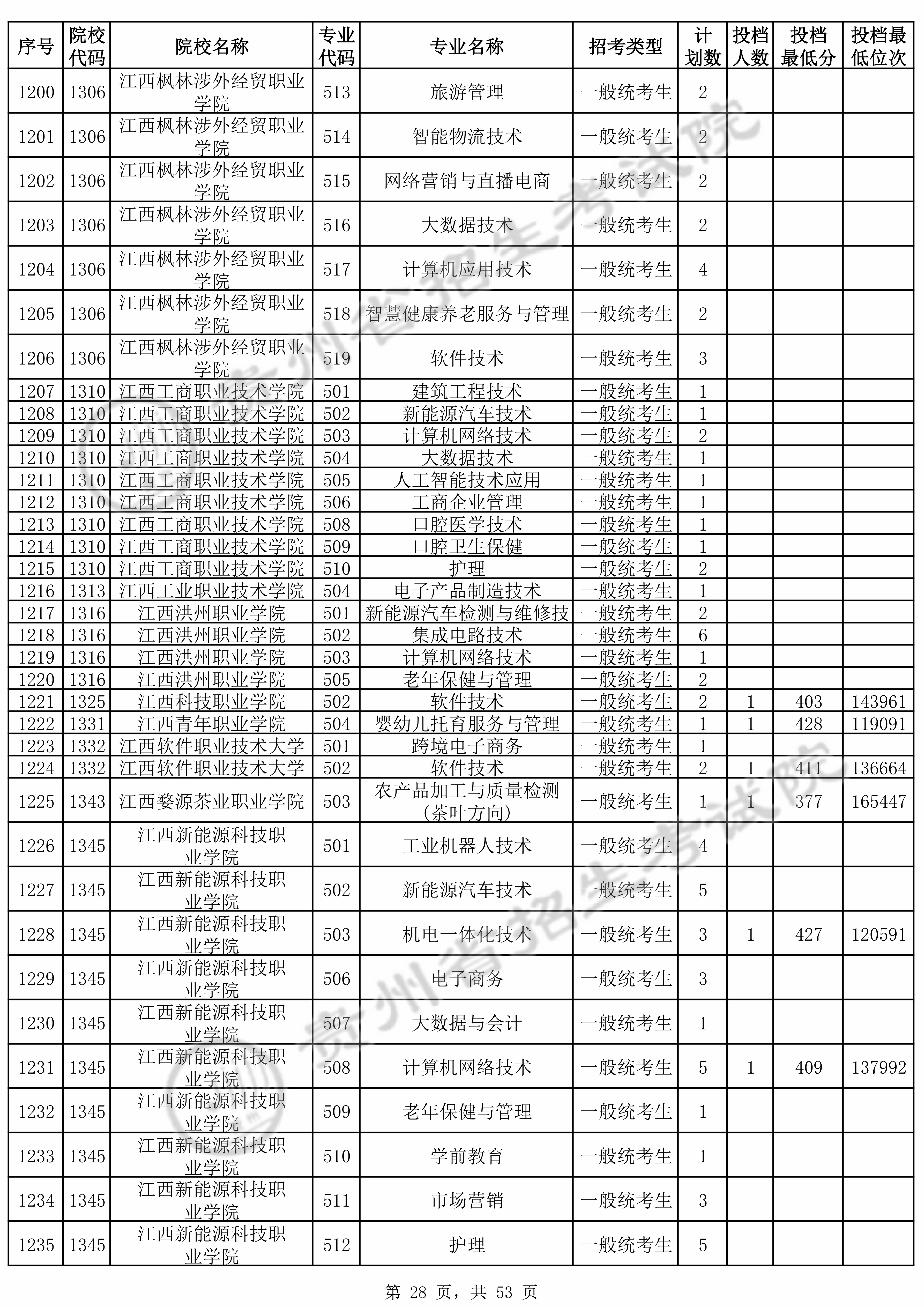 | 普通类高职(专科)批 | ||||||||