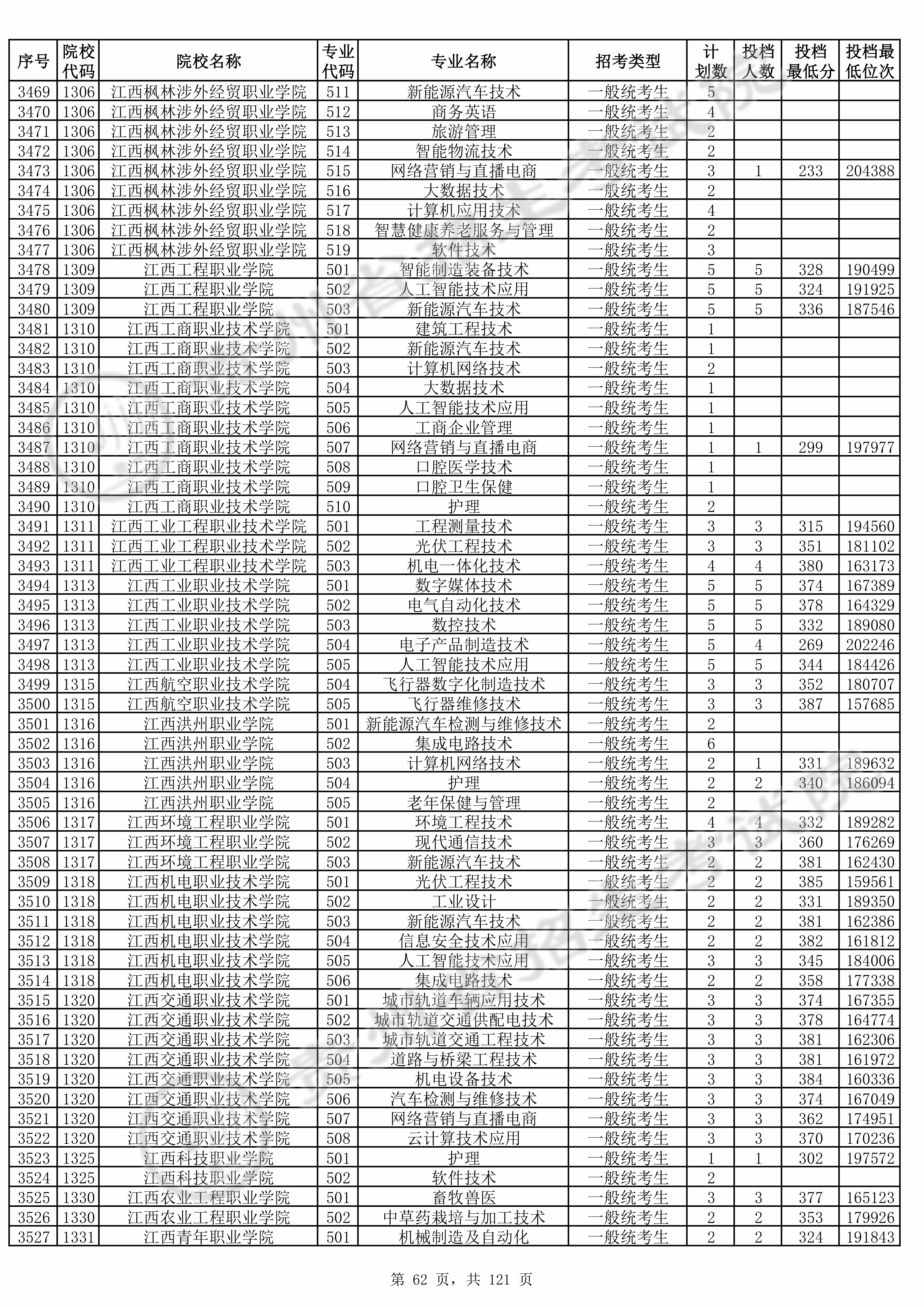 | 1317 | 江西环境工程职业学院 | 503 | 新能源汽车技术 | 381 | 162430 | 专科 | 物理 ,再选: 不限 | 1 |