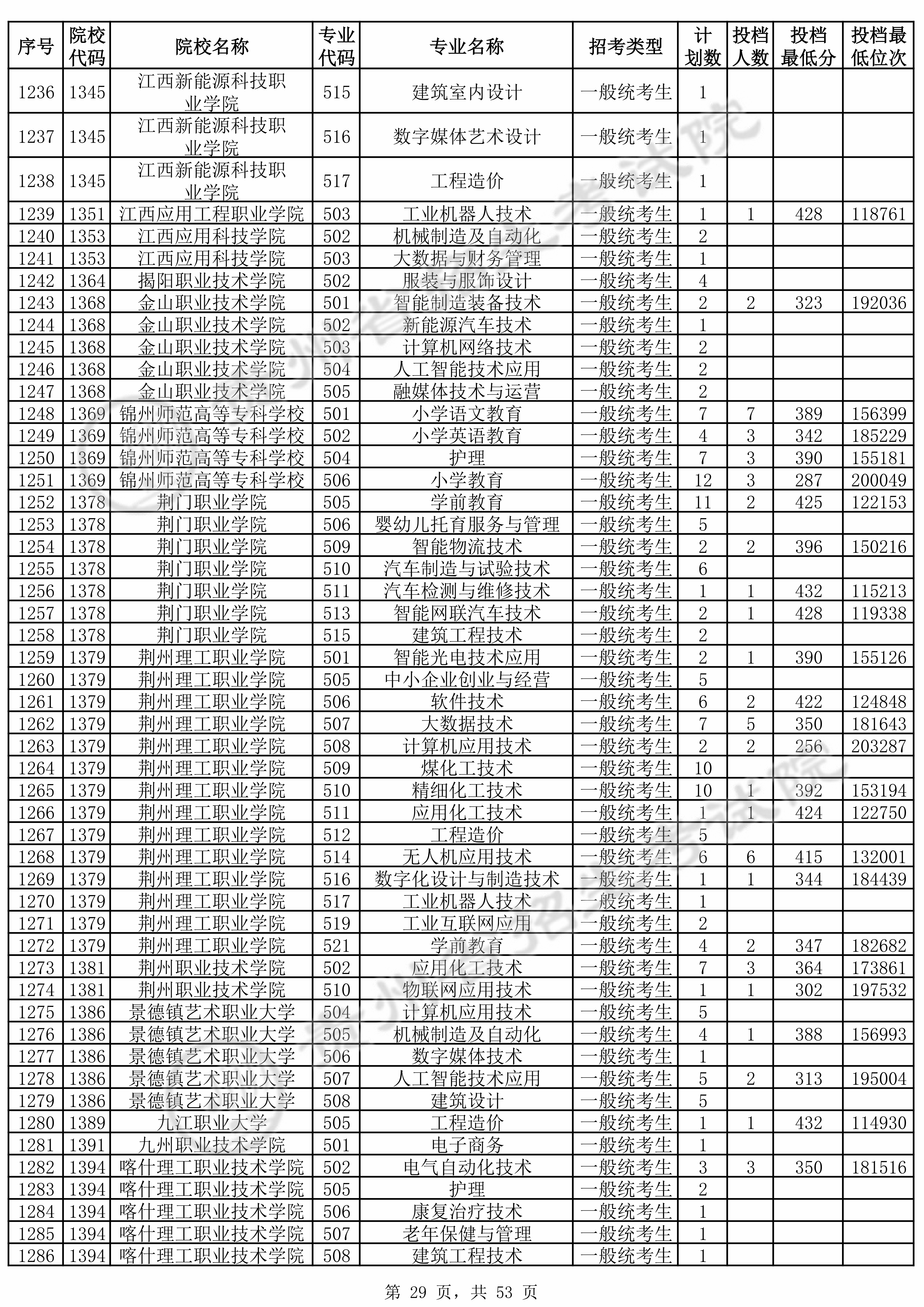 | 普通类高职(专科)批 | ||||||||