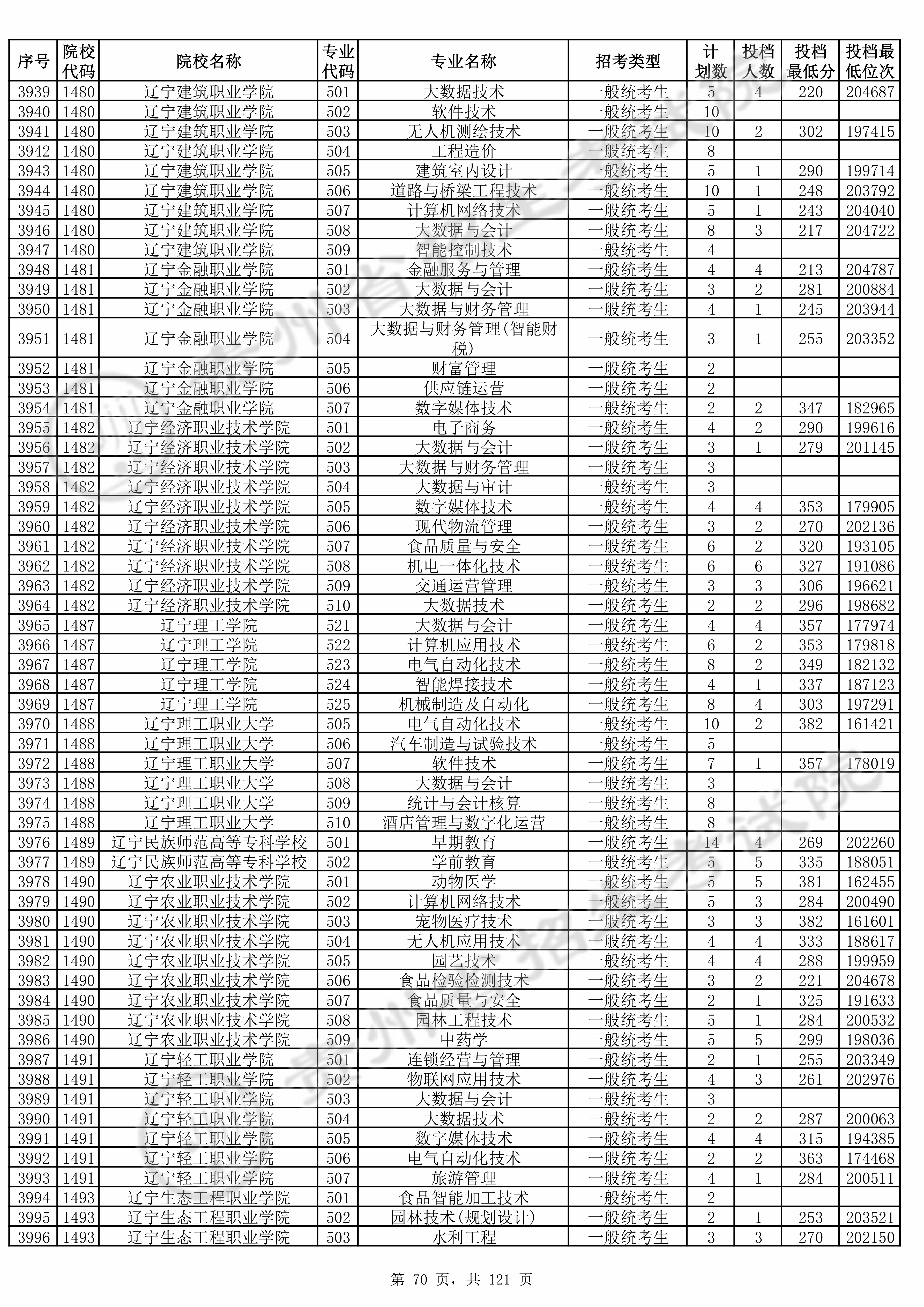 | 1493 | 辽宁生态工程职业学院 | 503 | 水利工程 | 270 | 202150 | 专科 | 物理 ,再选: 不限 | 1 |