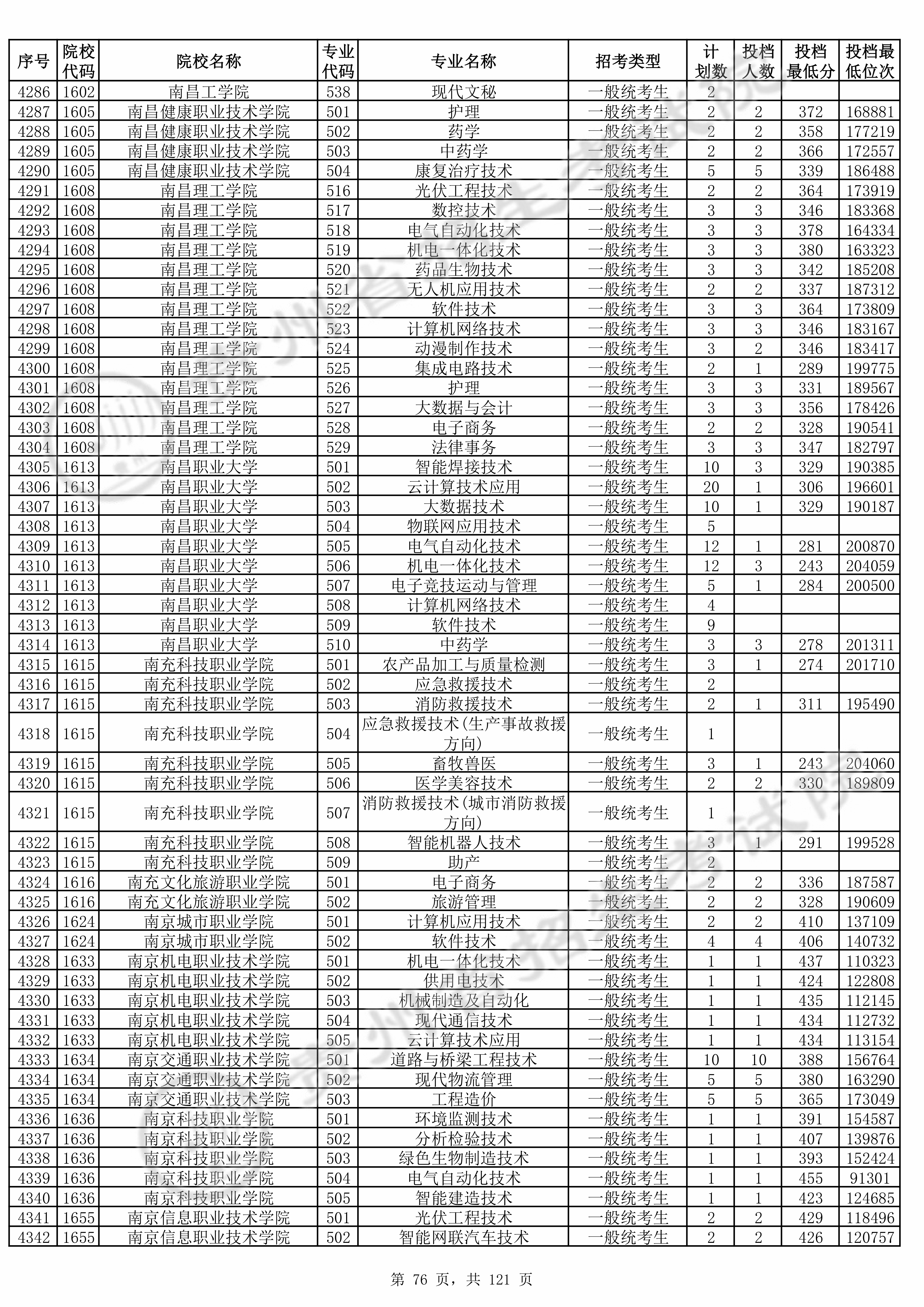 | 1655 | 南京信息职业技术学院 | 501 | 光伏工程技术 | 429 | 118496 | 专科 | 物理 ,再选: 不限 | 1 |