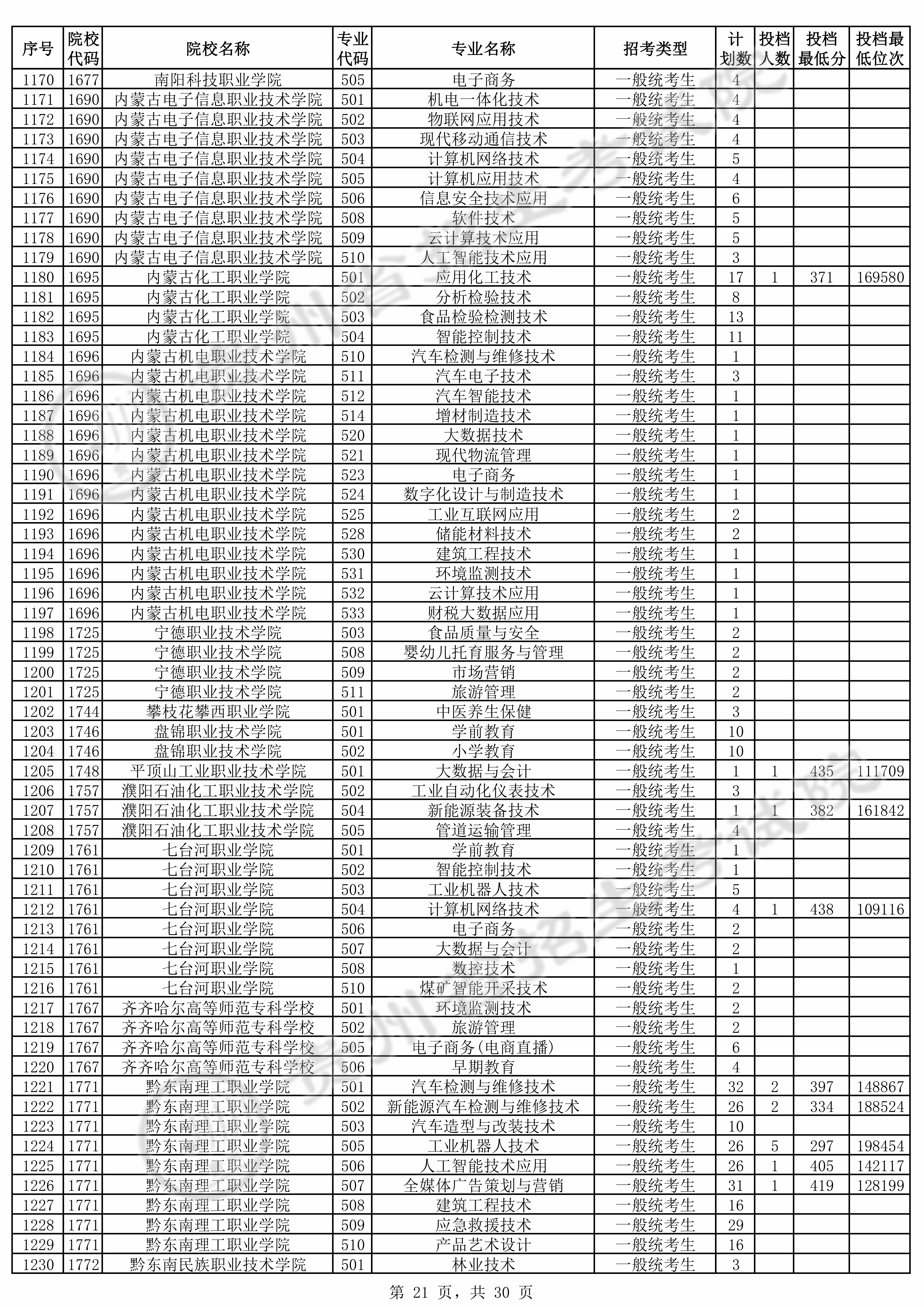 | 普通类高职(专科)批 第1次征集志愿投档录取原格式数据 |