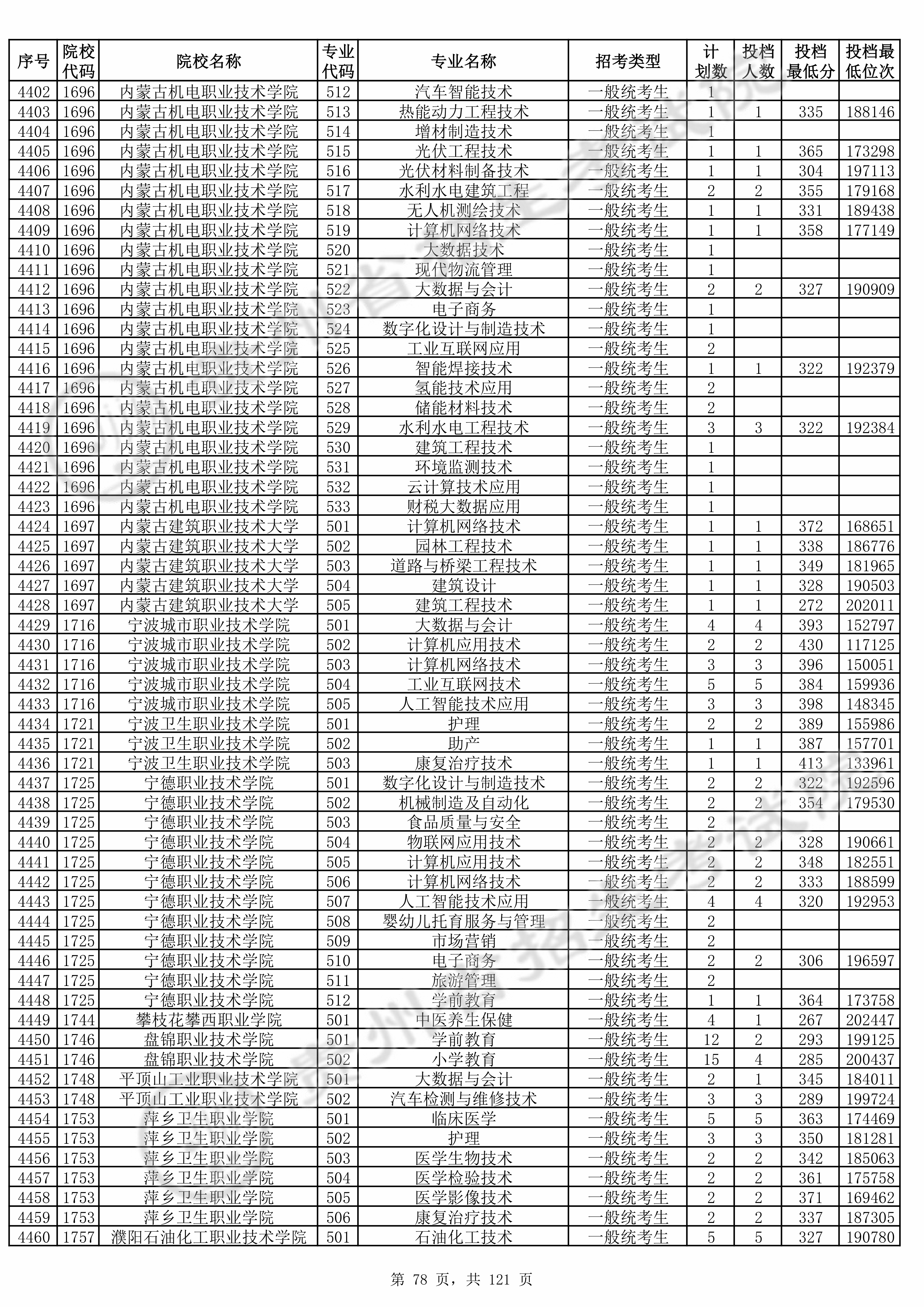 | 普通类高职(专科)批 首次投档录取原格式数据 |