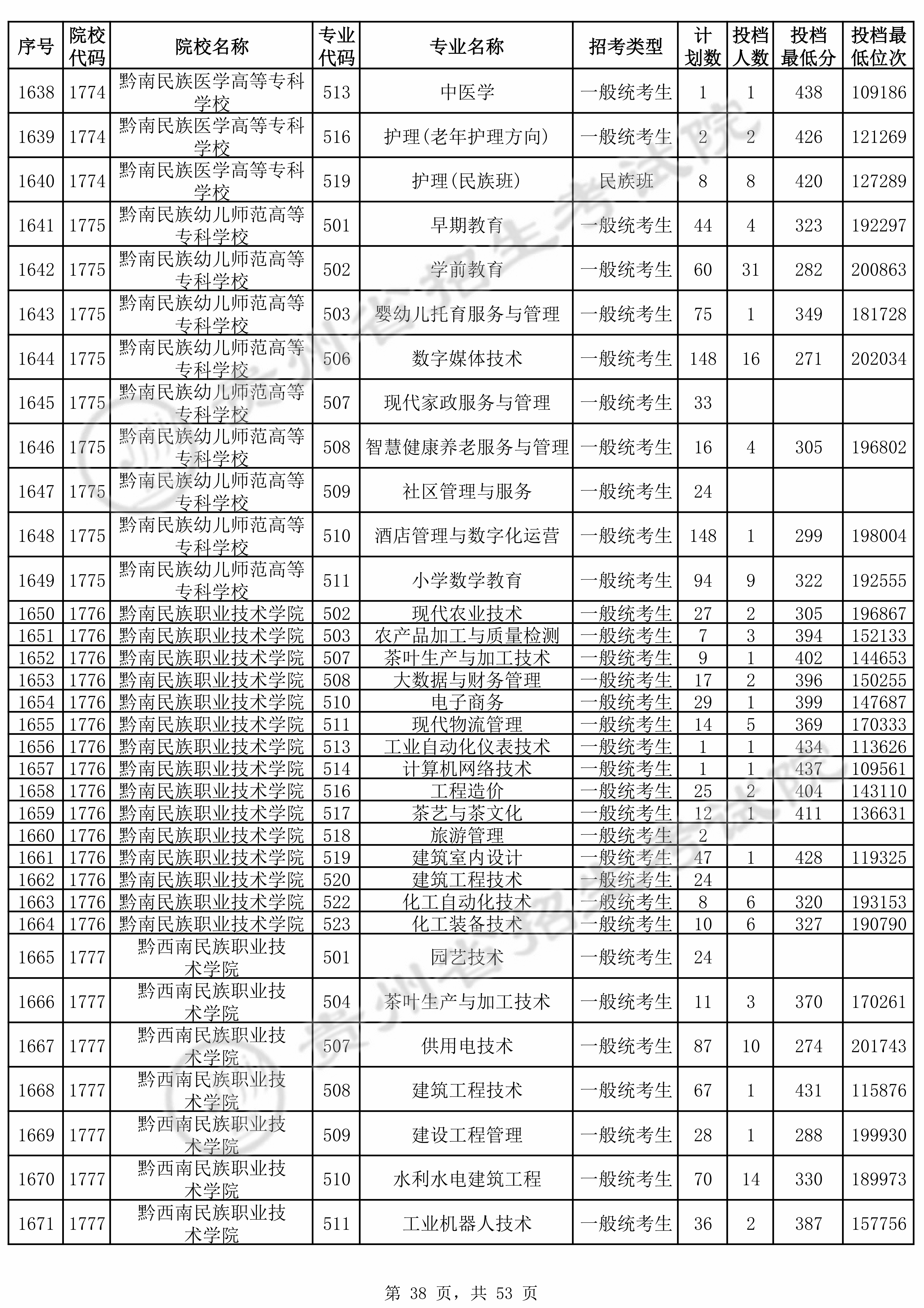 2025年贵州高考普通类高职(专科)批 黔南民族职业技术学院 的 大数据与财务管理 专业录取分数溯源信息