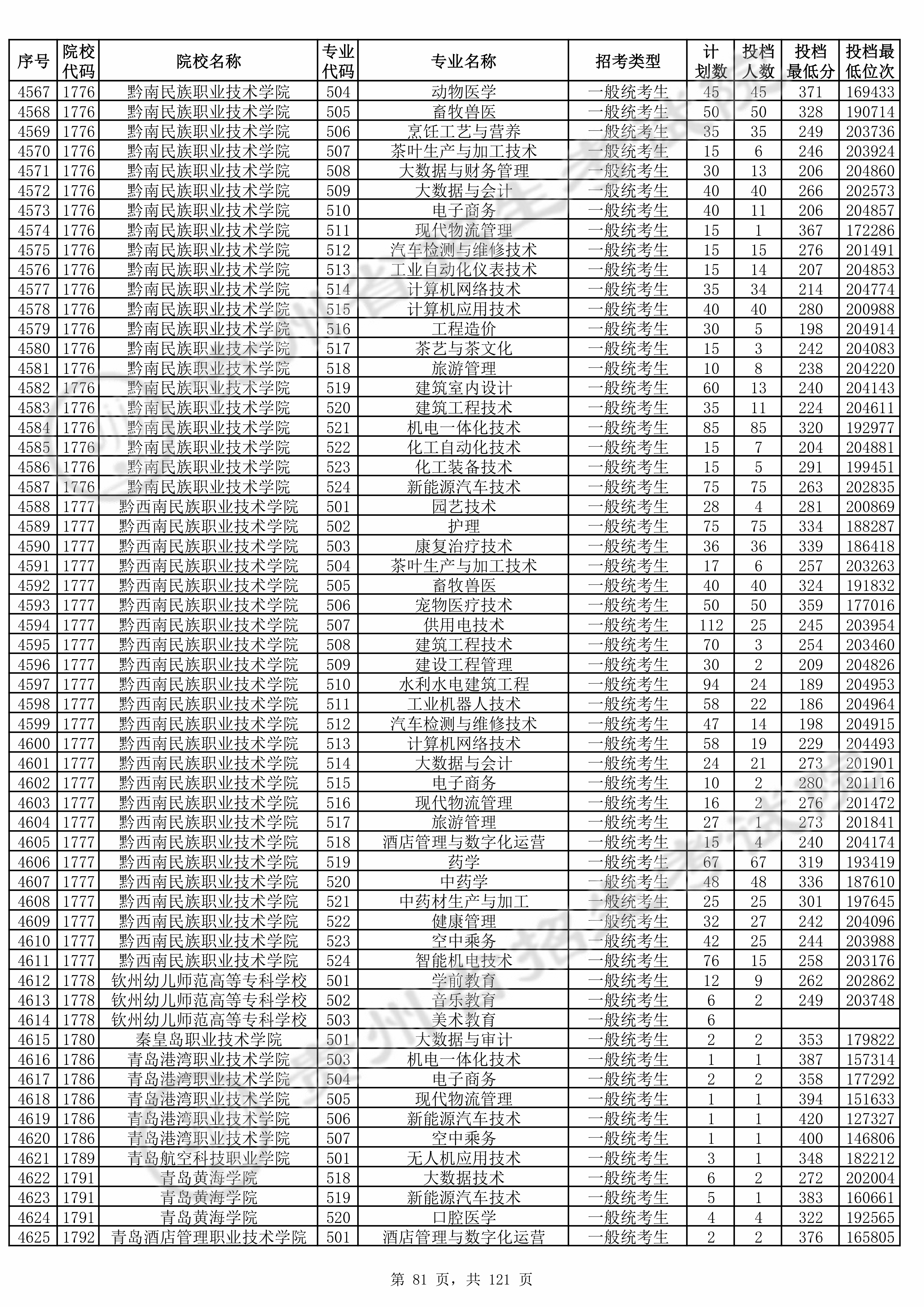 | 普通类高职(专科)批 首次投档录取原格式数据 |