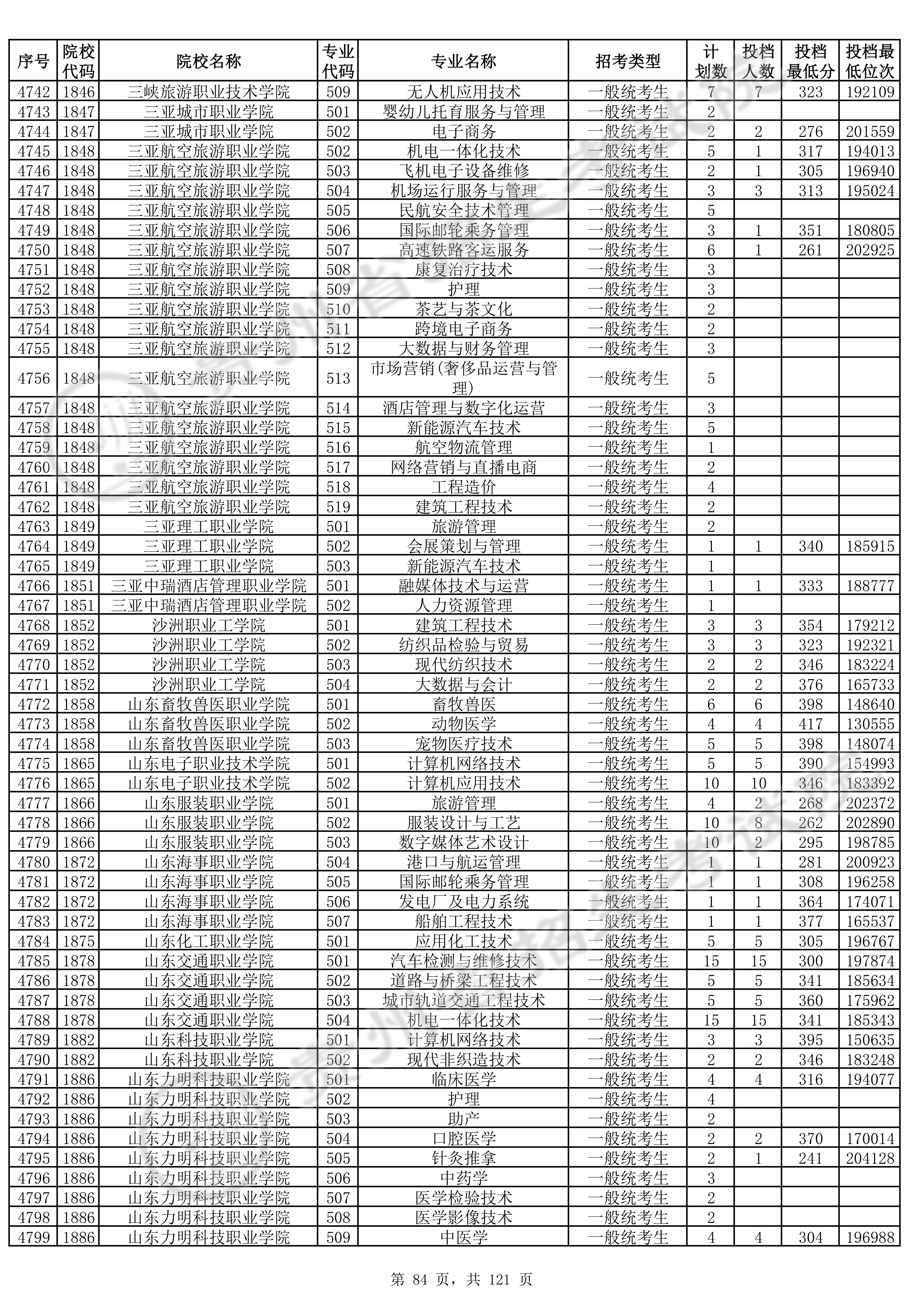 | 院校代码 | 院校名称 | 专业代码 | 专业名称 | 最低分数 | 最低位次 | 专业层次 | 限考科目 | 投档 |