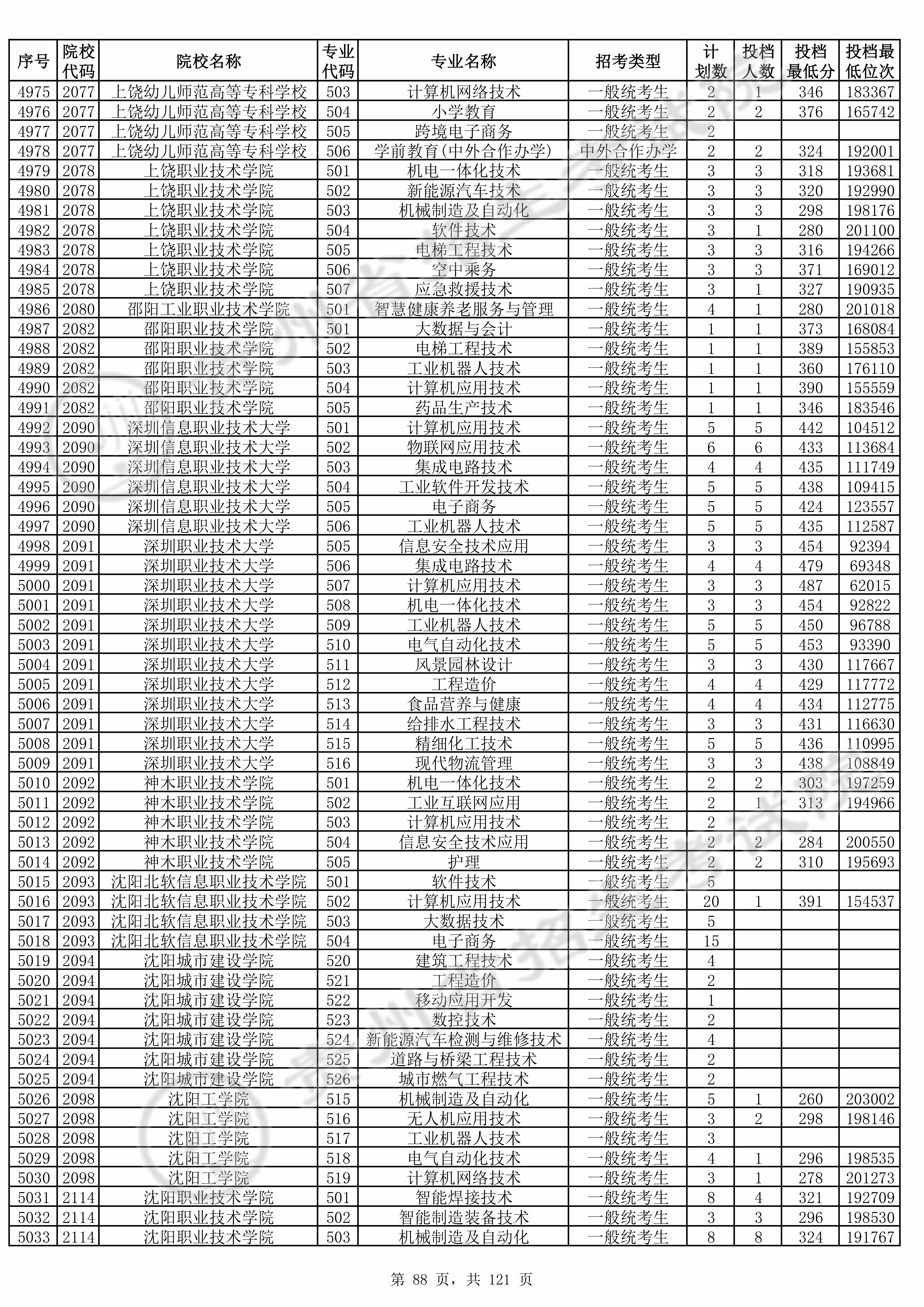 | 普通类高职(专科)批 | ||||||||